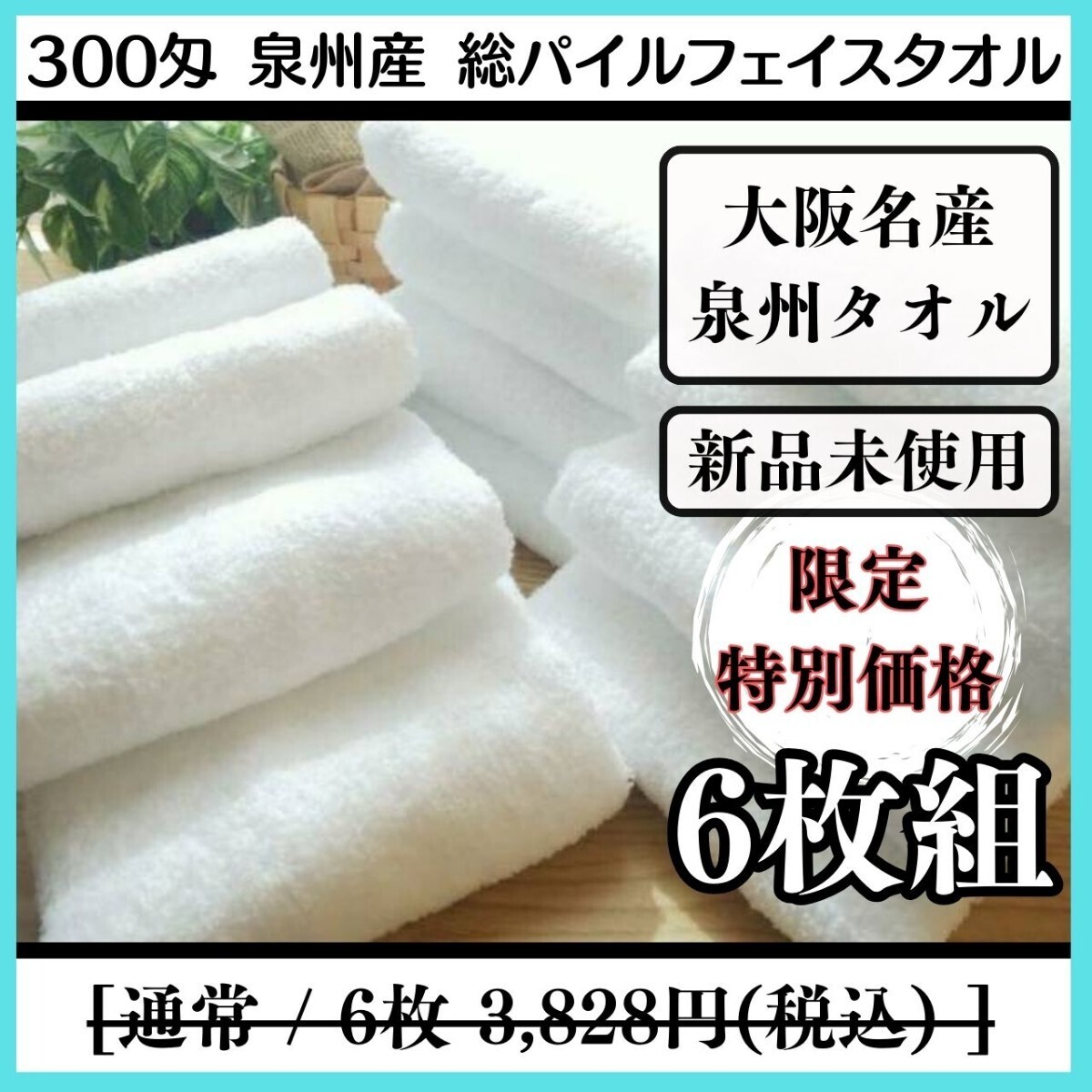 【泉州タオル】300匁総パイルフェイスタオルセット6枚組 タオルまとめて しっかり吸水 耐久性抜群【新品未使用】