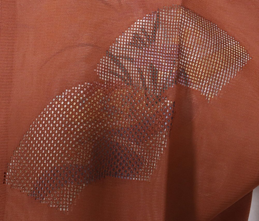 | 色・柄 | 6月9月用 和装コート 絽袷 二重絽 友禅 道行コート 小豆色地ドロンワーク扇 菖蒲・松・菊・萩 裏地:無双 牡丹・桔梗・舟 (写真では上手く色が出ない場合があります。ご了承下さい) |
