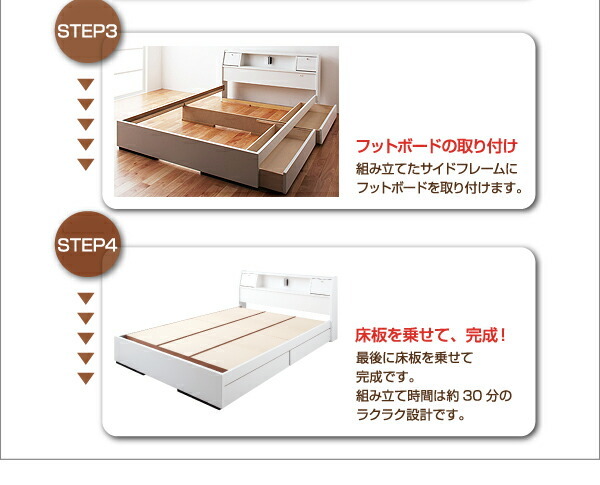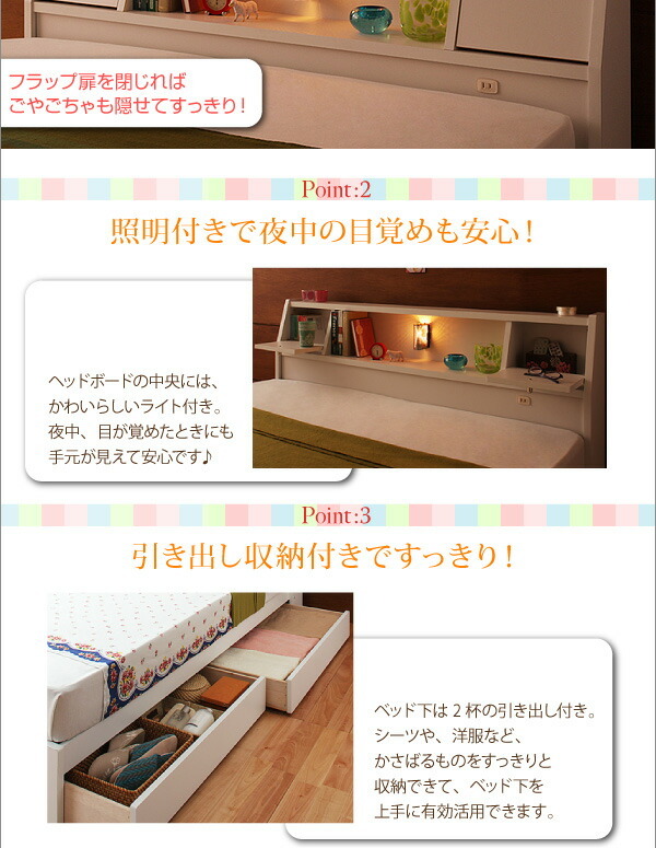 照明・コンセント付き収納ベッド ポケットコイルマットレス付き シングル