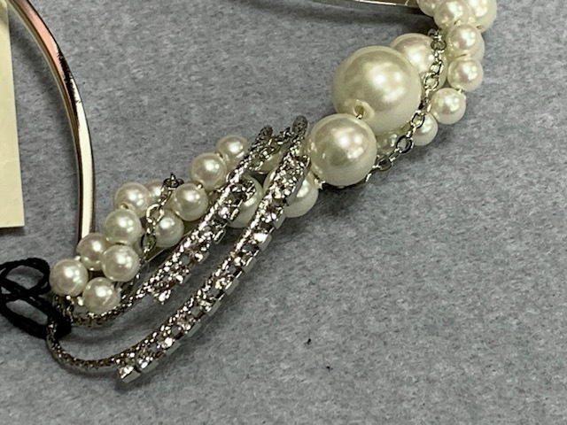 落ち着いた色合いにキラリと光るパールの色合いに、上品さを感じさせる髪飾りです。