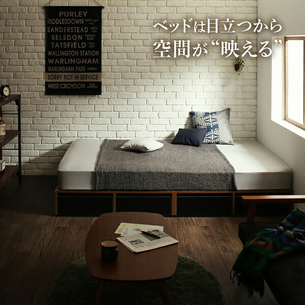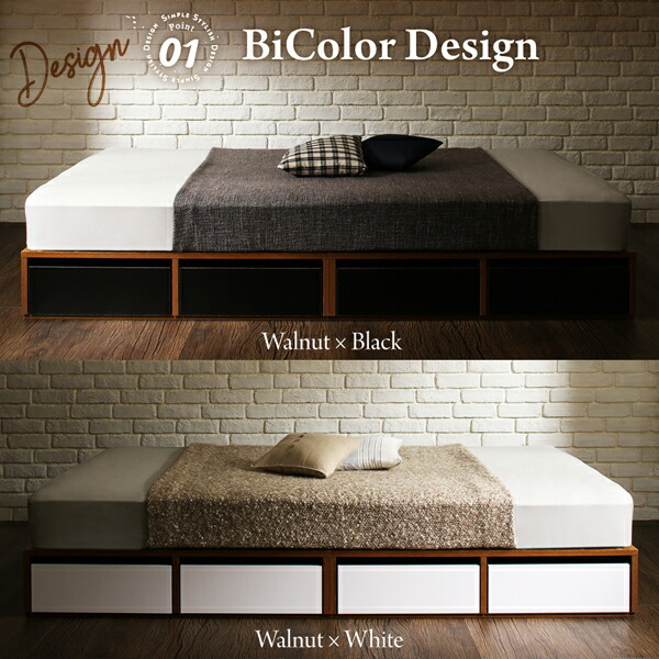 布団で寝られる おしゃれなヴィンテージ・モダン風 引き出し収納バイカラーベッド ベッドフレームのみ 引き出し4杯 セミダブル【フレームカラー:ウォルナット×ブラック】です。