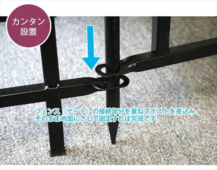 | 基本的に埋め込み部分をしっかり埋め込んで頂ければ自立しますが、柔らかすぎる地面などでは倒れる恐れがありますので、お客様自身で固定いただくか、ご使用をお避けください。 |