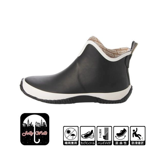JW_20089 アウトレット メンズ 25.0cm ブラック/ホワイト レインシューズ 天然ゴム 防水 防滑底 耐摩耗性 屈曲性 耐候性
