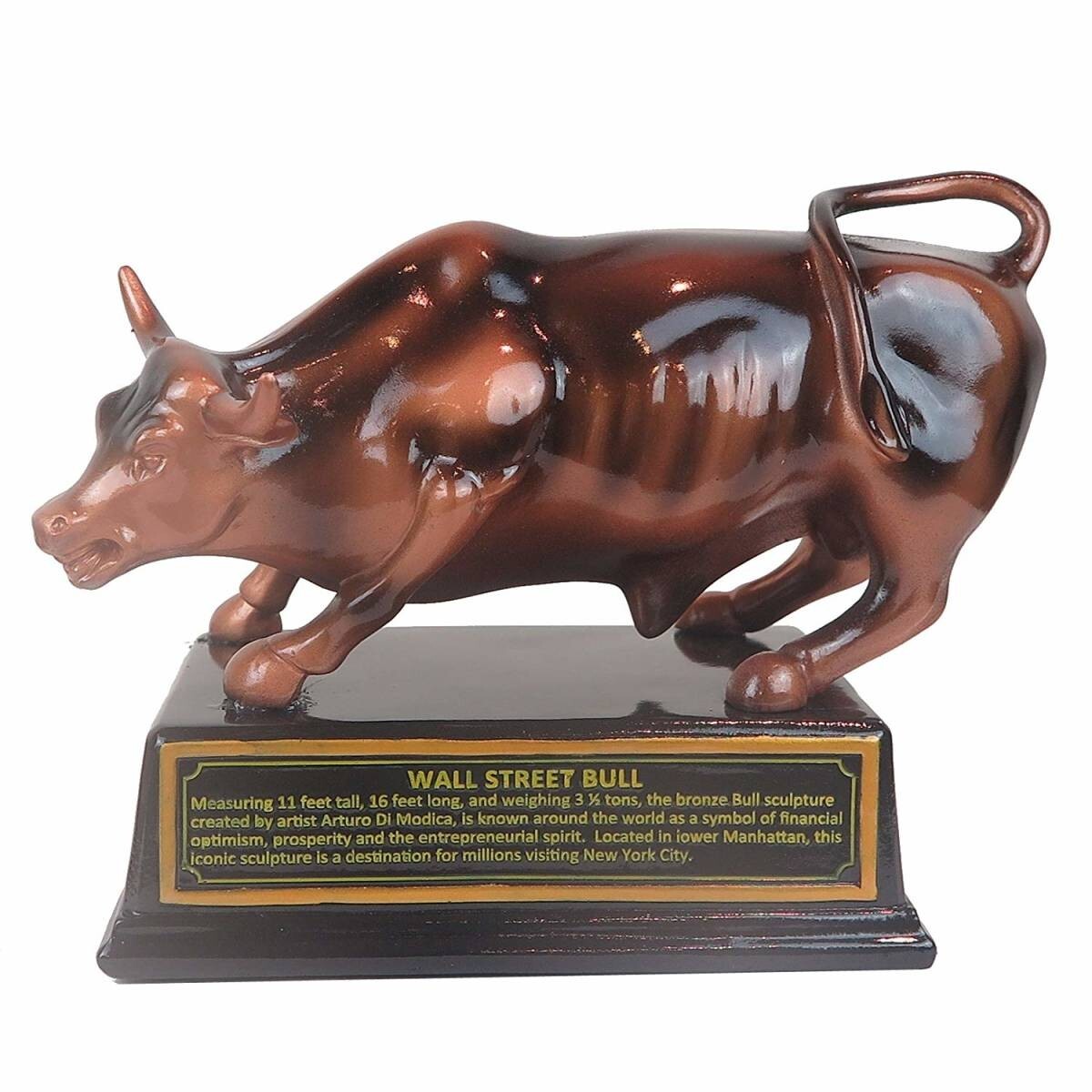 【ウォールストリート株式市場 から公式に認可された、ブロンズ風 チャージング・ブル/ウォールストリートブル ニューヨーク置物(ベース付き) 彫像 彫刻(輸入品)】