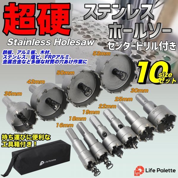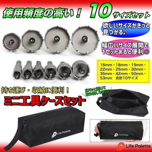 | ステンレス HSS ホルソー 超硬 ホールソー 10点 セット 切削工具 DIY 加工 電気ドリル 穴あけ DIY 電気ドリル 工具ケース ライフパレット | ||