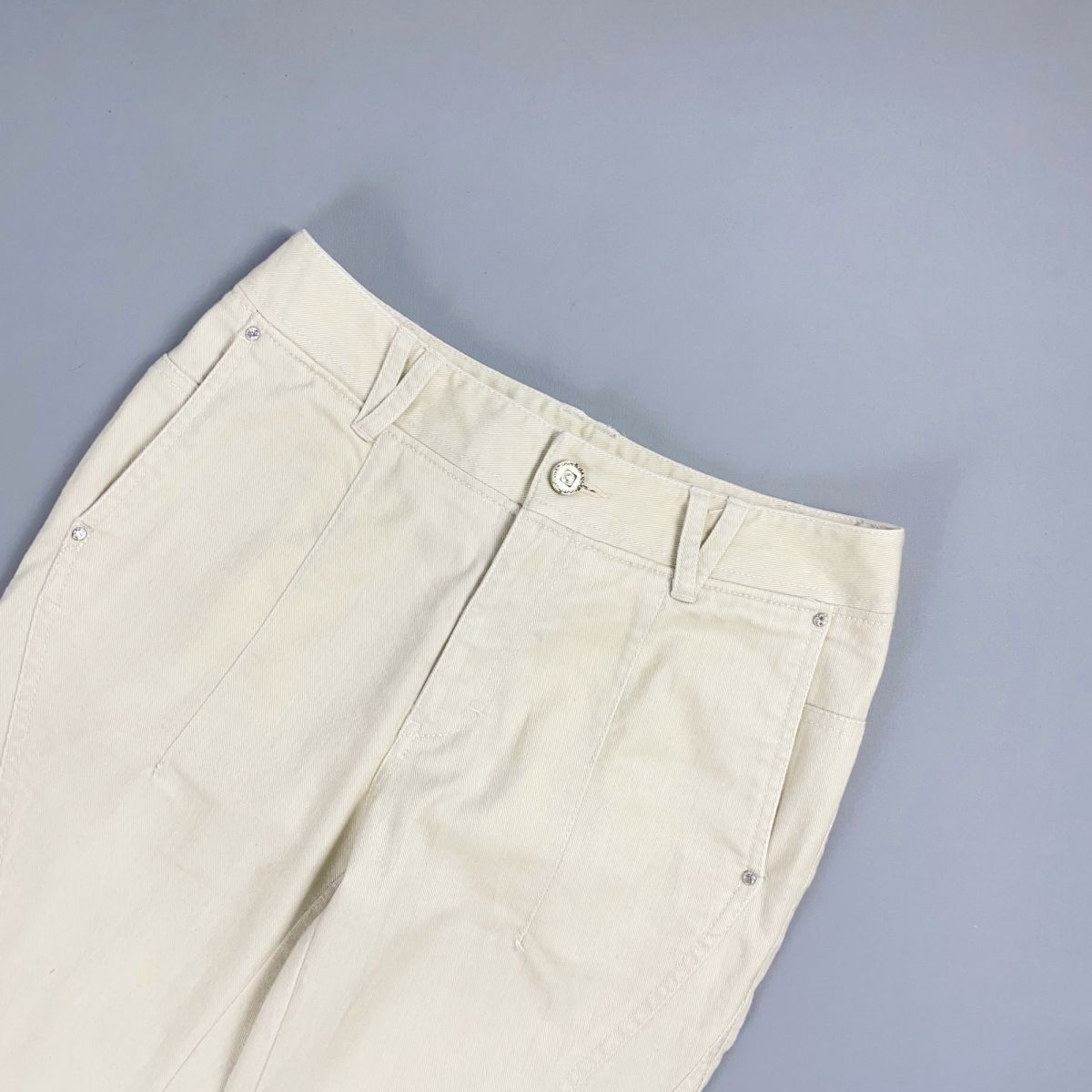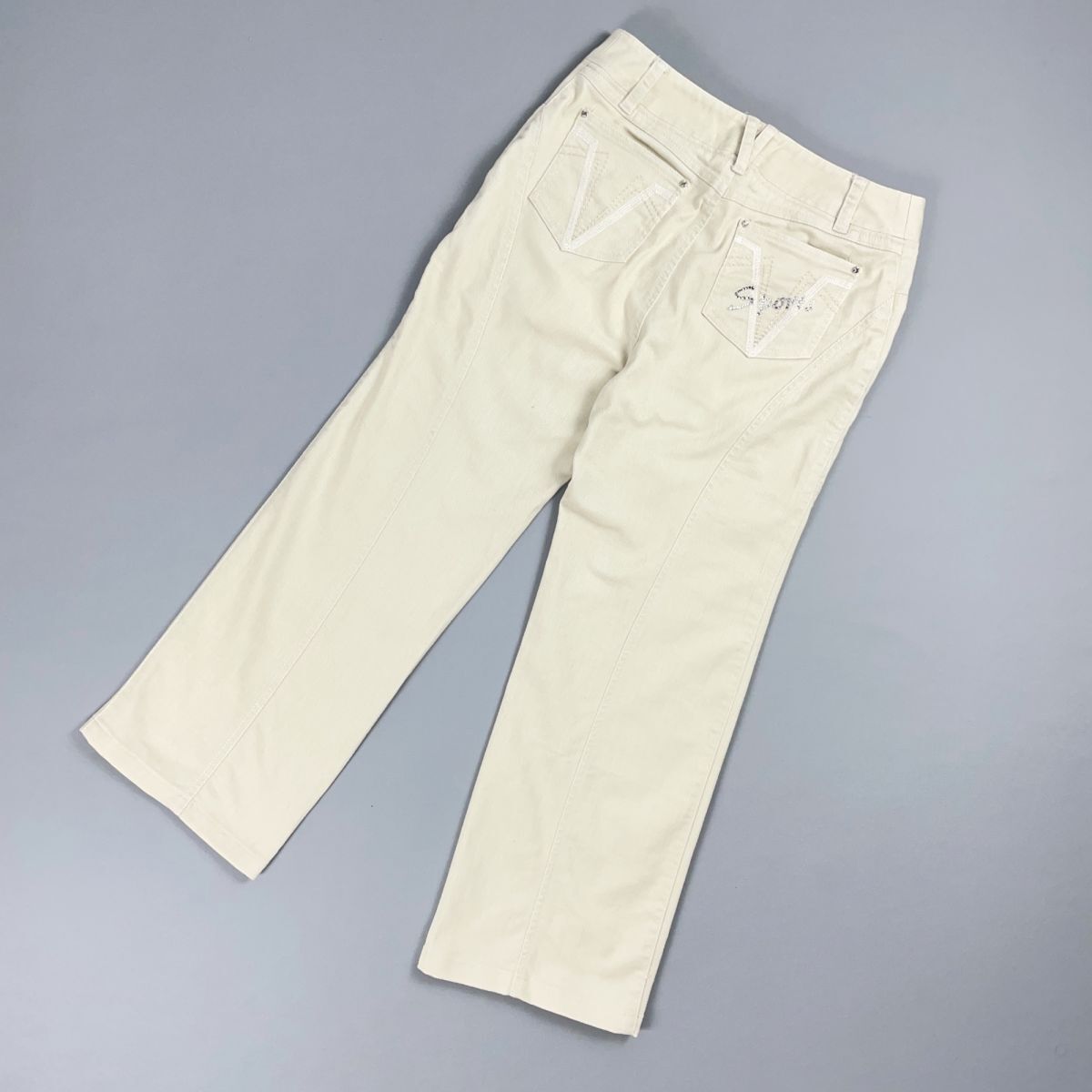 美品 VALENZA SPORTS バレンザスポーツ クロップドデニムパンツ ラインストーン ボトムス レディース ベージュ サイズ40*OC387