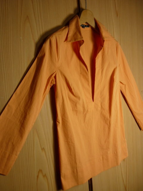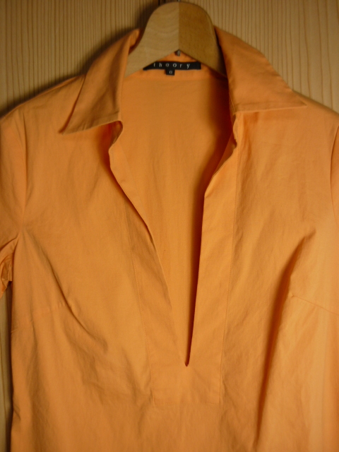 I37★美品★Theory(セオリー)・サイズ 0(S)【スキッパーシャツ】オレンジ系★商品詳細は記載文を・・