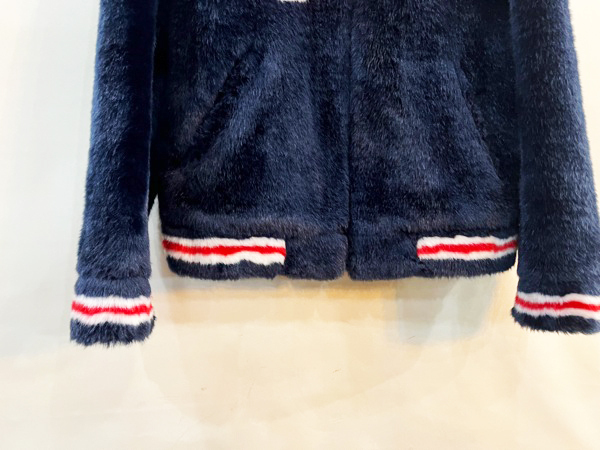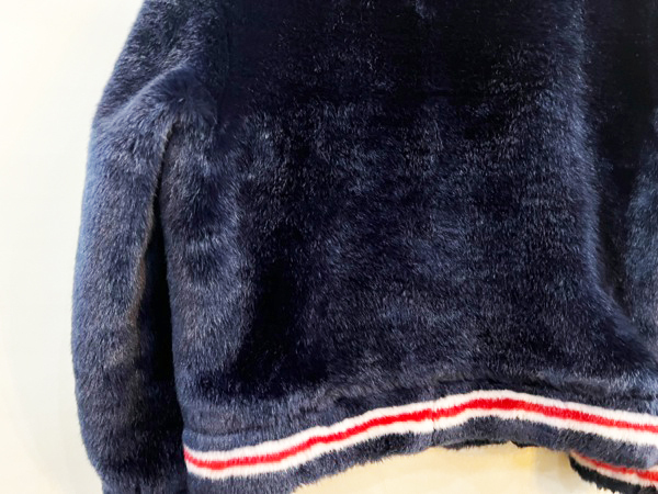 肌触りの良いフェイクファーを使用したスタジャンタイプのバーシティジャケット。