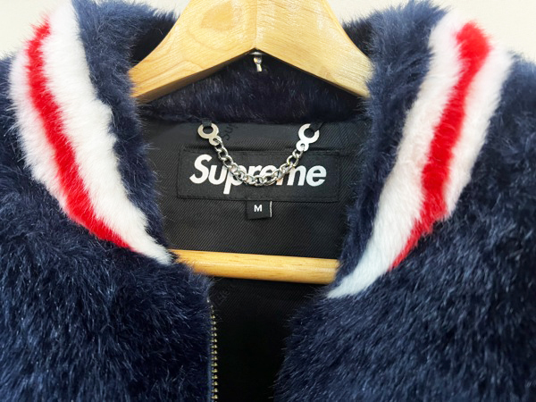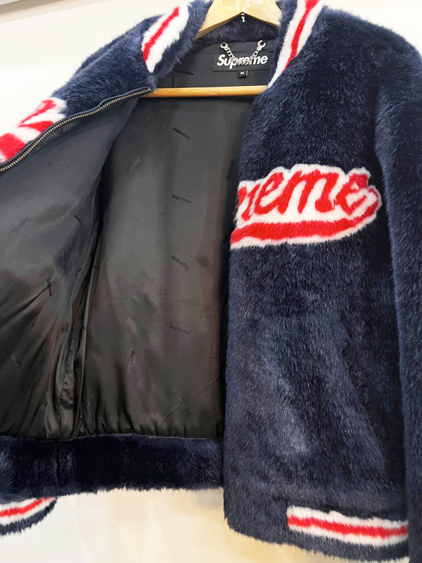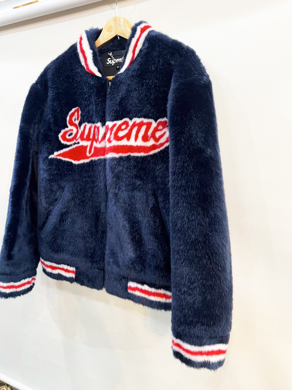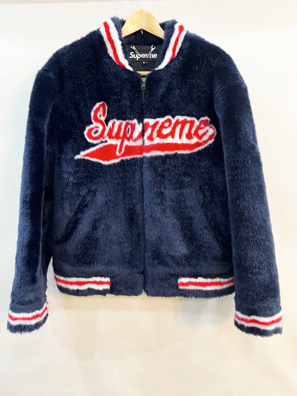 Q25★Supreme/シュプリーム 20SS Faux Fur Varsity Jacket フェイクファーバーシティジャケット スタジャン ネイビー メンズ Mサイズ ★