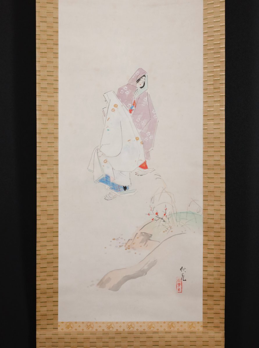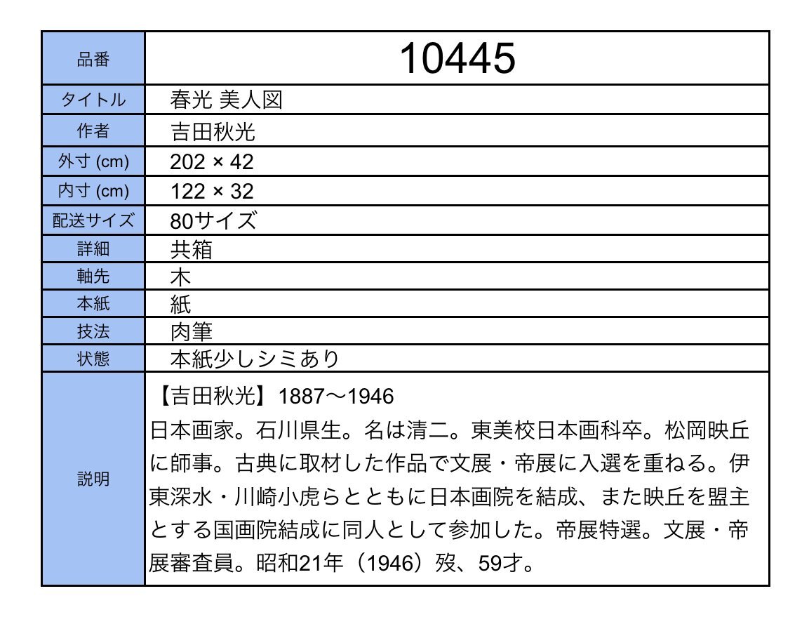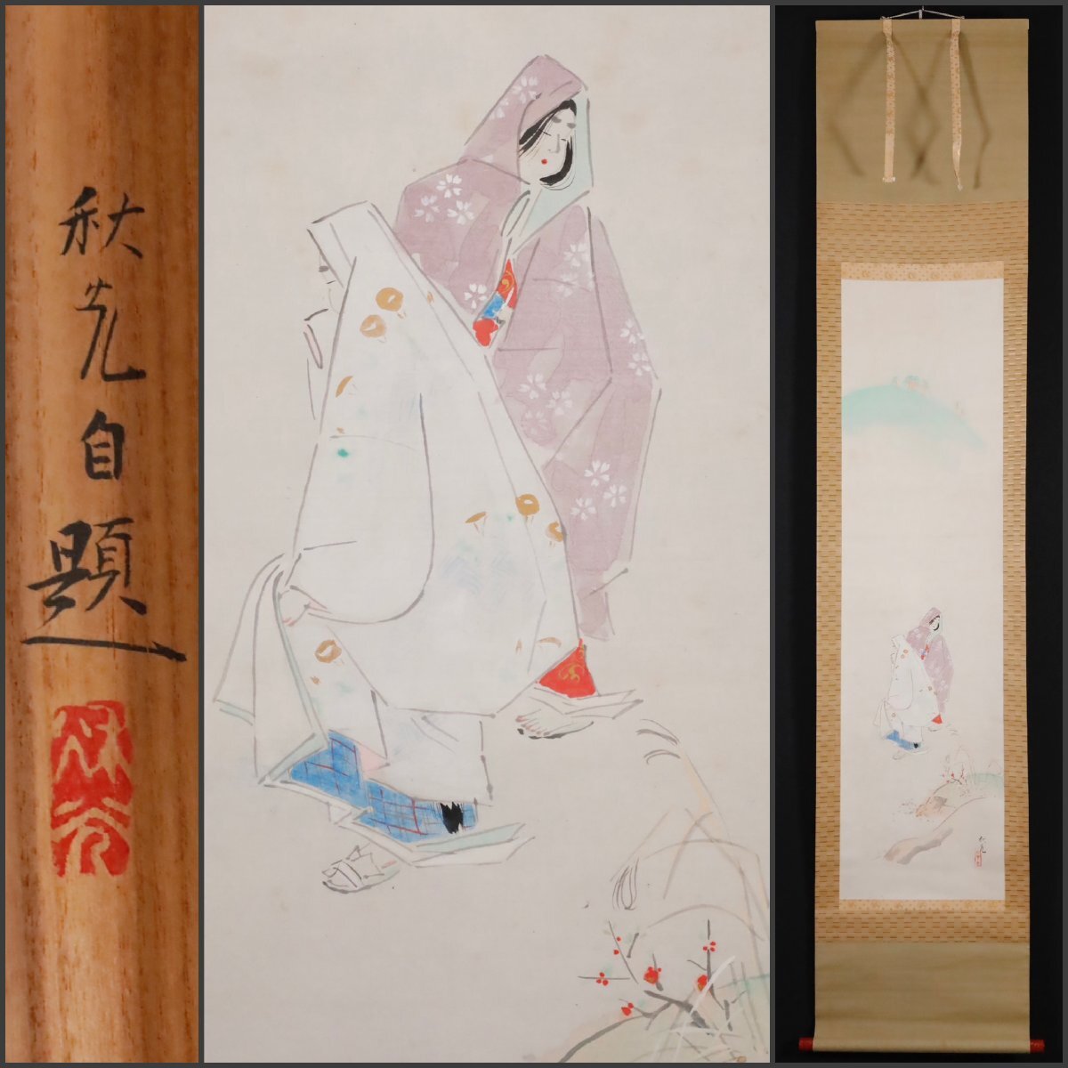 【模写】吉】10445 吉田秋光 春光 美人図 共箱 松岡映丘師事 伊東深水 大和絵 風俗画 物語絵 石川県の人 茶掛け 茶道具 書 掛軸 掛け軸