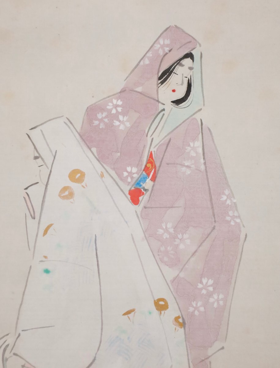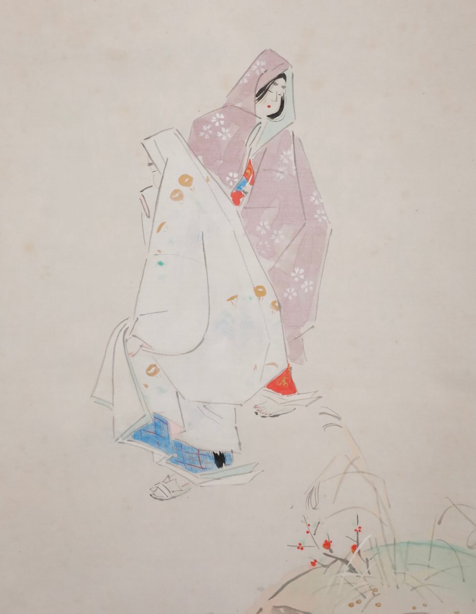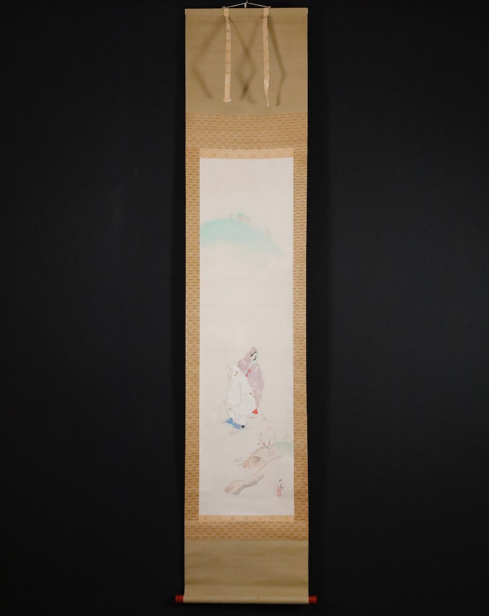 【模写】吉】10445 吉田秋光 春光 美人図 共箱 松岡映丘師事 伊東深水 大和絵 風俗画 物語絵 石川県の人 茶掛け 茶道具 書 掛軸 掛け軸