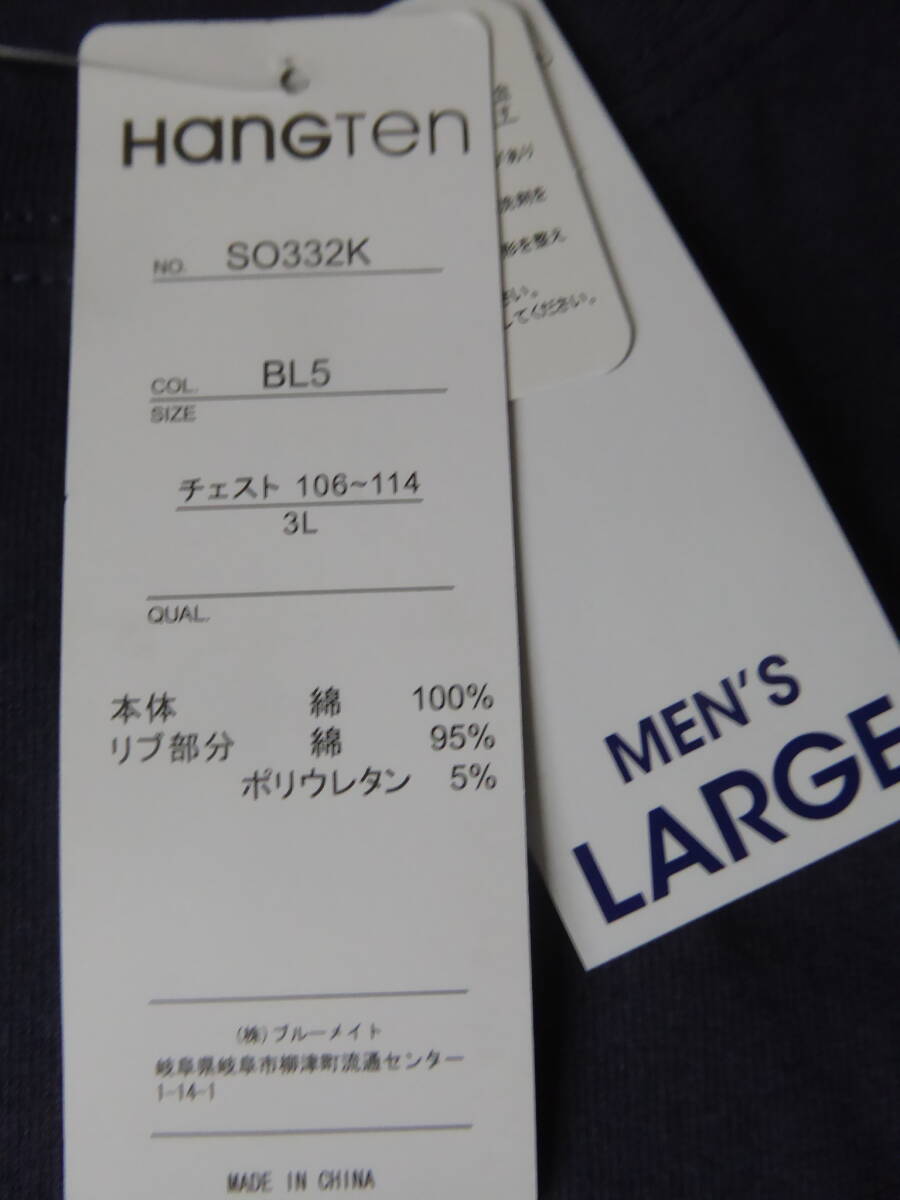 HANGTEN ハンテン サーフボードBIG刺繍ロゴ カジュアル コットン クールネック長袖シャツ ロンT 3L 紺