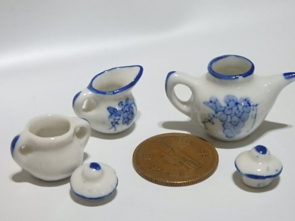 説明文を最後までお読みになり納得の上で入札お願いします。 ☆☆☆☆☆☆☆☆☆☆☆☆☆☆☆☆☆☆☆☆ ミニチュア 食器 ティーセット ぶどう柄 写真1枚目がすべてです 。 10円玉はサイズ比較のもので出品物ではありません。 ミニチュアです。 細かな擦れ、汚れ、色はげあります。 ティーポット少しかけがあります。 カップの1つに片側に絵柄がありません。 写真をご確認ください。 あくまで中古品です。 写真をご確認ください。 美品をお求めの方はご遠慮ください。 ☆☆☆☆☆☆☆☆☆☆☆☆☆☆☆☆☆☆☆☆ 詳細ついては画像にて判断お願いします。 他にもいろいろ出品してますのでご覧になってください。 現在出品している商品は→こちらです。 | ||||