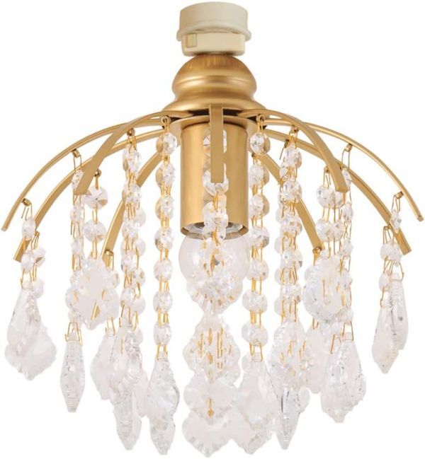 • 【商品情報】サイズ:(約)直径約29cm×高約25.5cm。カラー:ゴールド。材質:スチール、クリスタル。点灯方式:壁スイッチ。重量:(約)2.2kg。口金サイズ:E26。取付方法:ダクトレール式。使用電球:60W×1個。※本商品に電球は付属していません。※LED電球、白熱電球、電球型蛍光灯使用可。※ご注意:電球をあまりきつ過ぎしないように、取り付けてください。