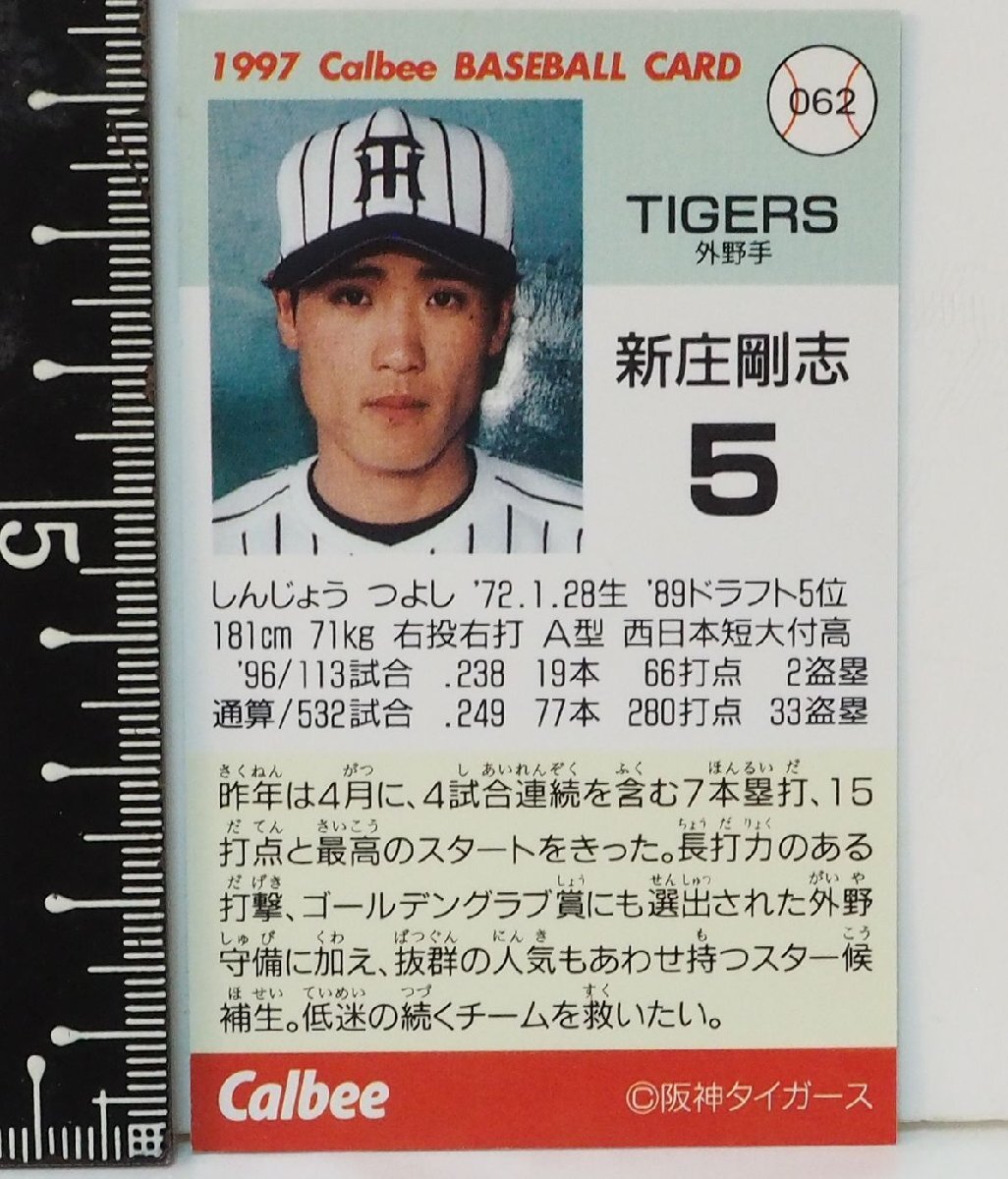 97年 カルビー プロ野球カード 062【新庄 剛志 外野手 阪神タイガース】平成9年 1997年 当時物 Calbeeおまけ食玩BASEBALL【中古】送料込