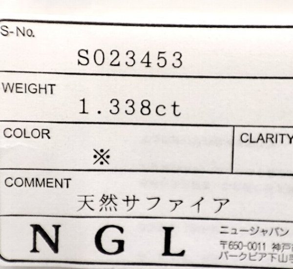 ★サファイア サイズ 縦 × 横 × 高さ : 約11.0mm × 4.9mm × 3.1mm (約) 1.338ct(総量) |
