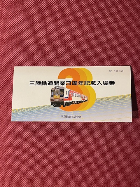 三陸鉄道 開業3周年記念入場券 (管理番号16-9)
