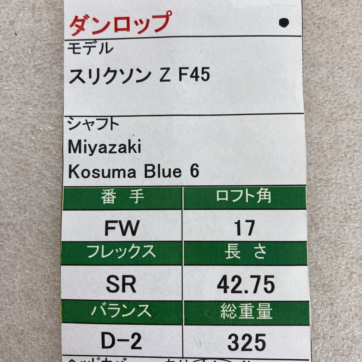 【即決価格】【FW】ダンロップ/スリクソンZ F45/17度/Miyazaki Kosuma Blue 6/FLEX SR/カバー無し