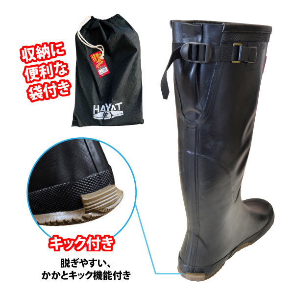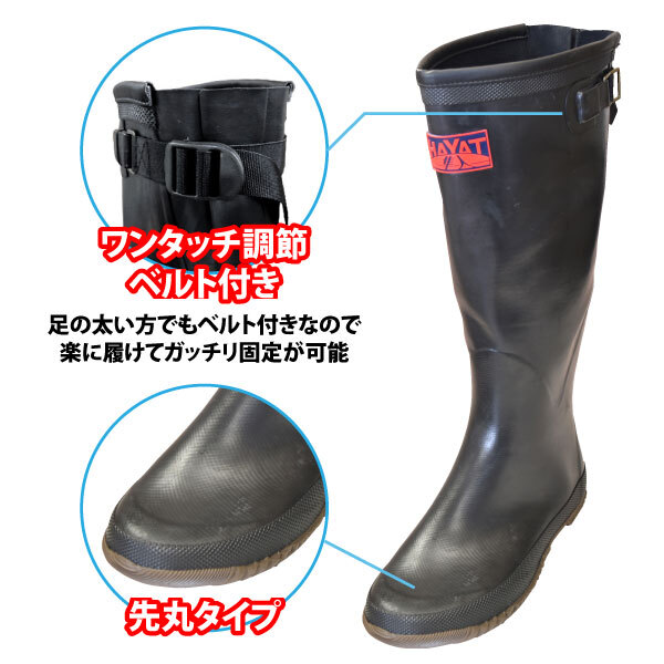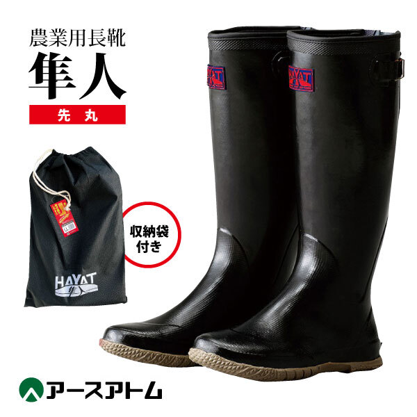 アトム 年間対応 長靴 【 2510 】隼人 農作業用長靴 【Lサイズ26.0cm】 ブラック ●先丸● ワンタッチベルト かかとキック付き