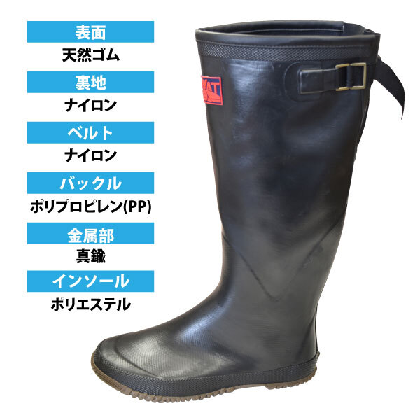 ・やわらかく丈夫な、裏生地付きの天然ゴム製長靴