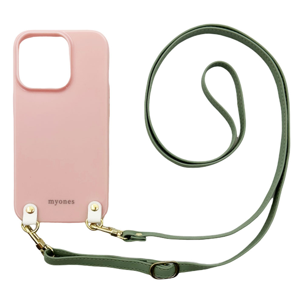 iPhone12 mini スマホケース(くすみピンク/アッシュグリーン)ソフトケース ストラップ 肩掛け 首かけ