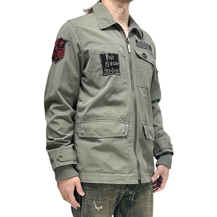ワッペンがハンドステッチと刺繍で施されている他、程よいダメージ加工や袖口のリブ、裏地のドクロプリントなど細部までしっかり作り込んだクオリティの高いアイテムです。