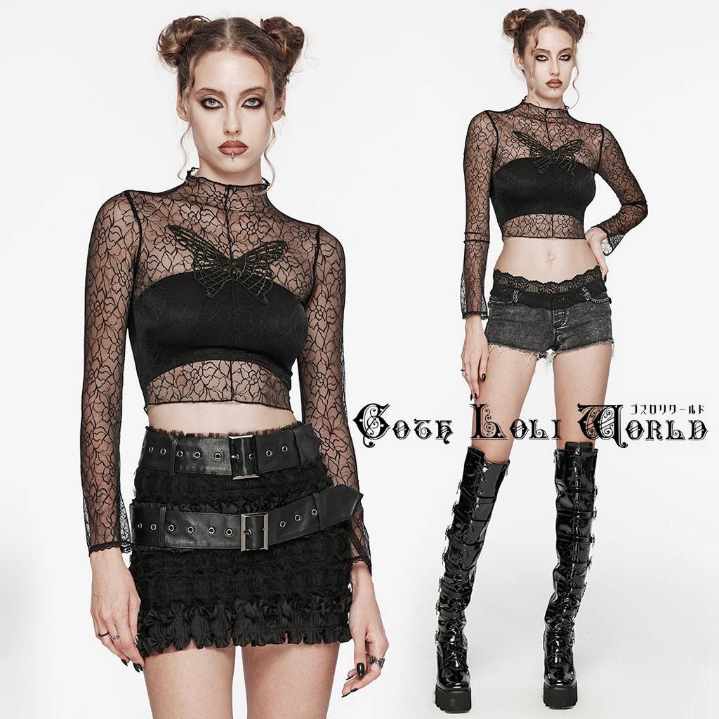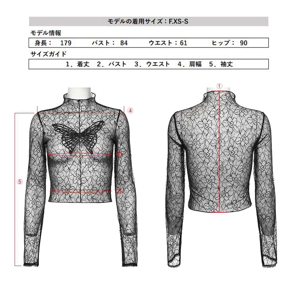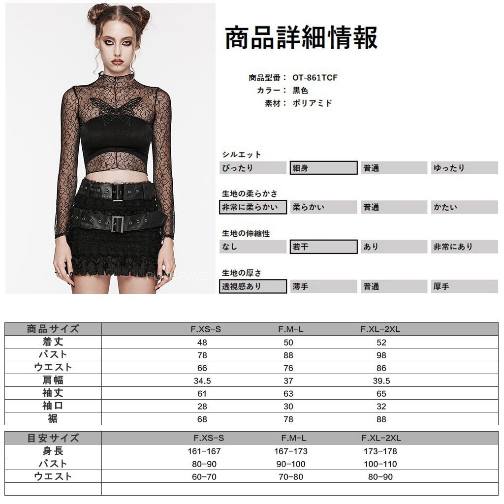 OT-861TCF-BK-M-L 柄入りシースルーモックネック長袖ショート カットソー ゴスロリワールド ゴシック パンク ロック ビジュアル系 V系