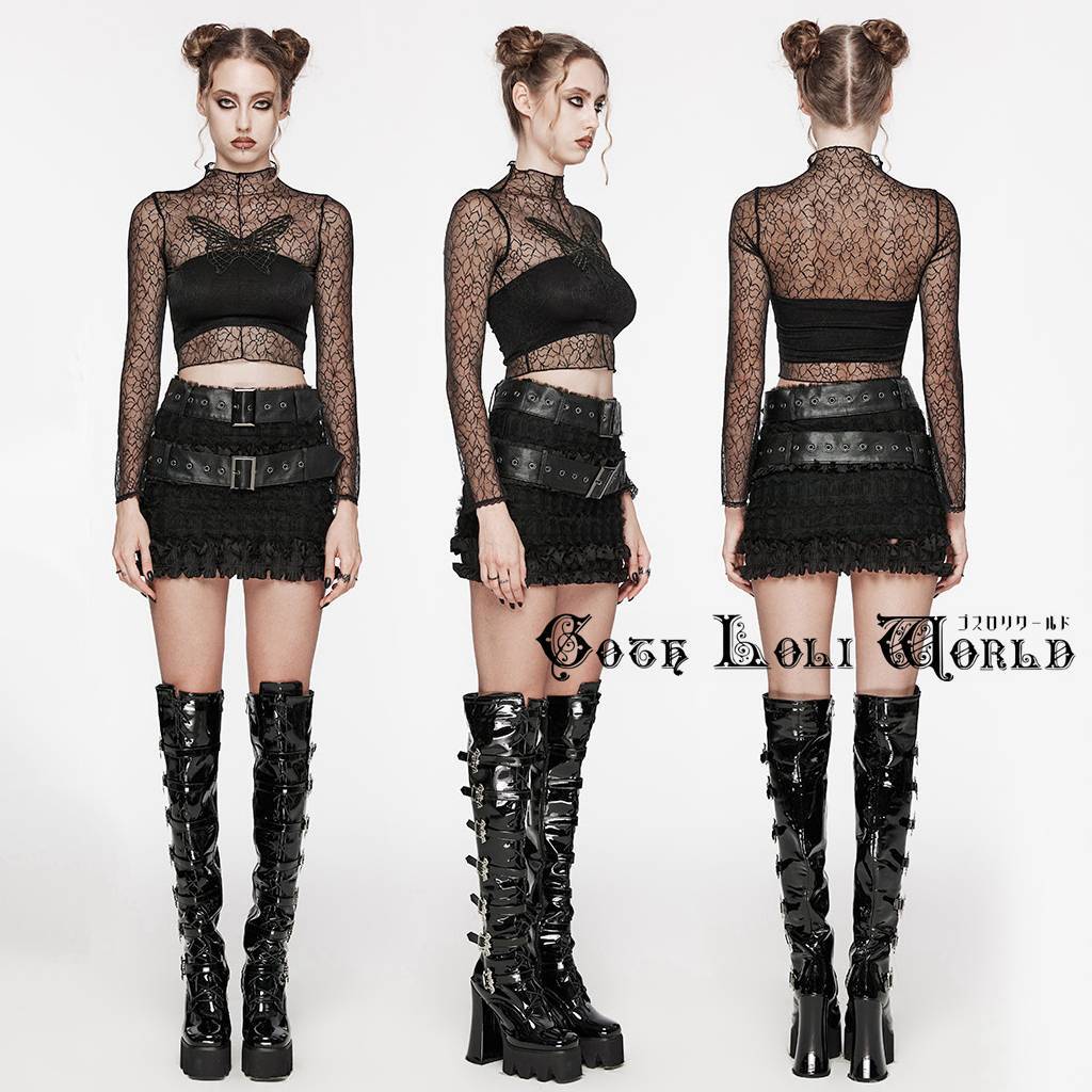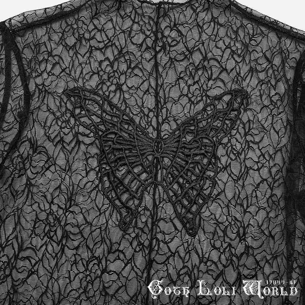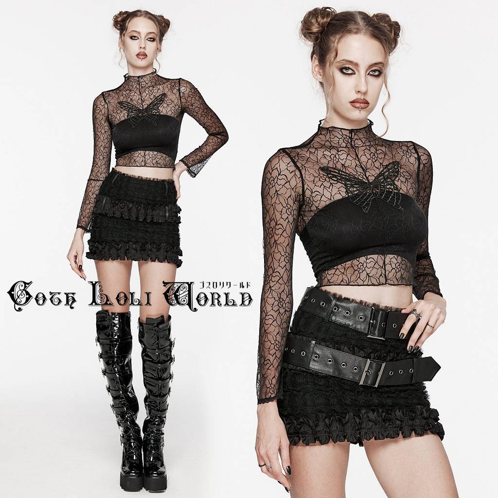 OT-861TCF-BK-M-L 柄入りシースルーモックネック長袖ショート カットソー ゴスロリワールド ゴシック パンク ロック ビジュアル系 V系