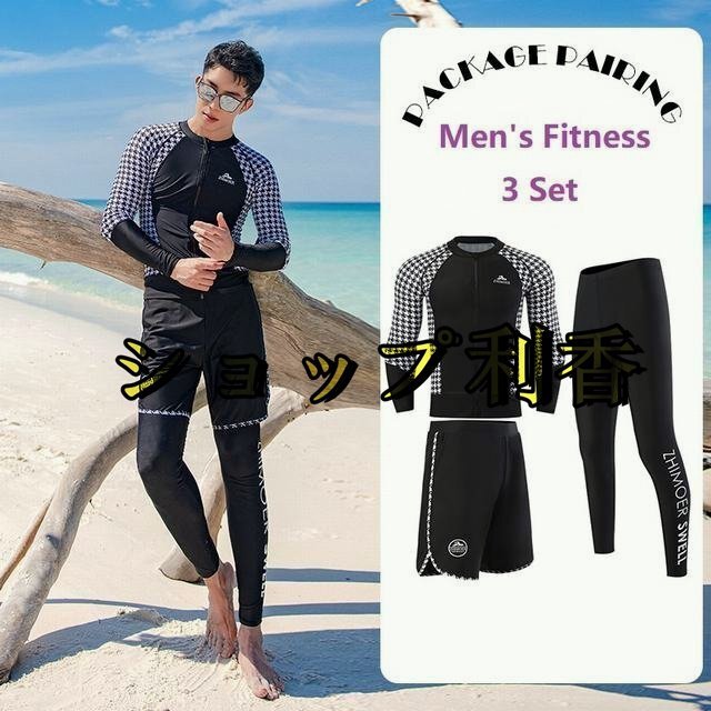 メンズ水着 フィットネス水着 セパレート水着 サーフフィットネス水着 上下セット スイミング スポーツ 体系カバー ジム サイズL