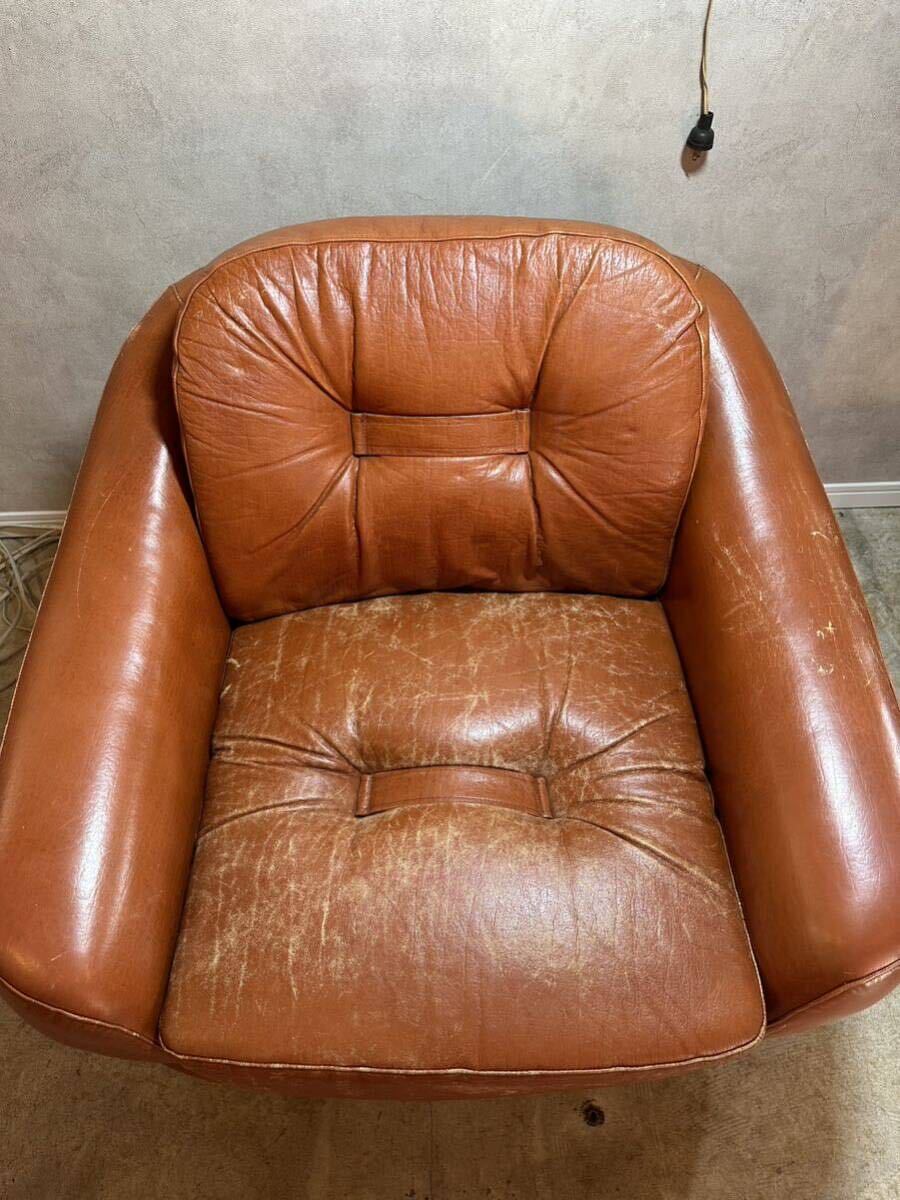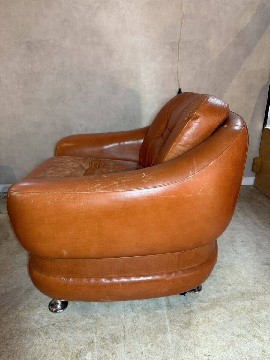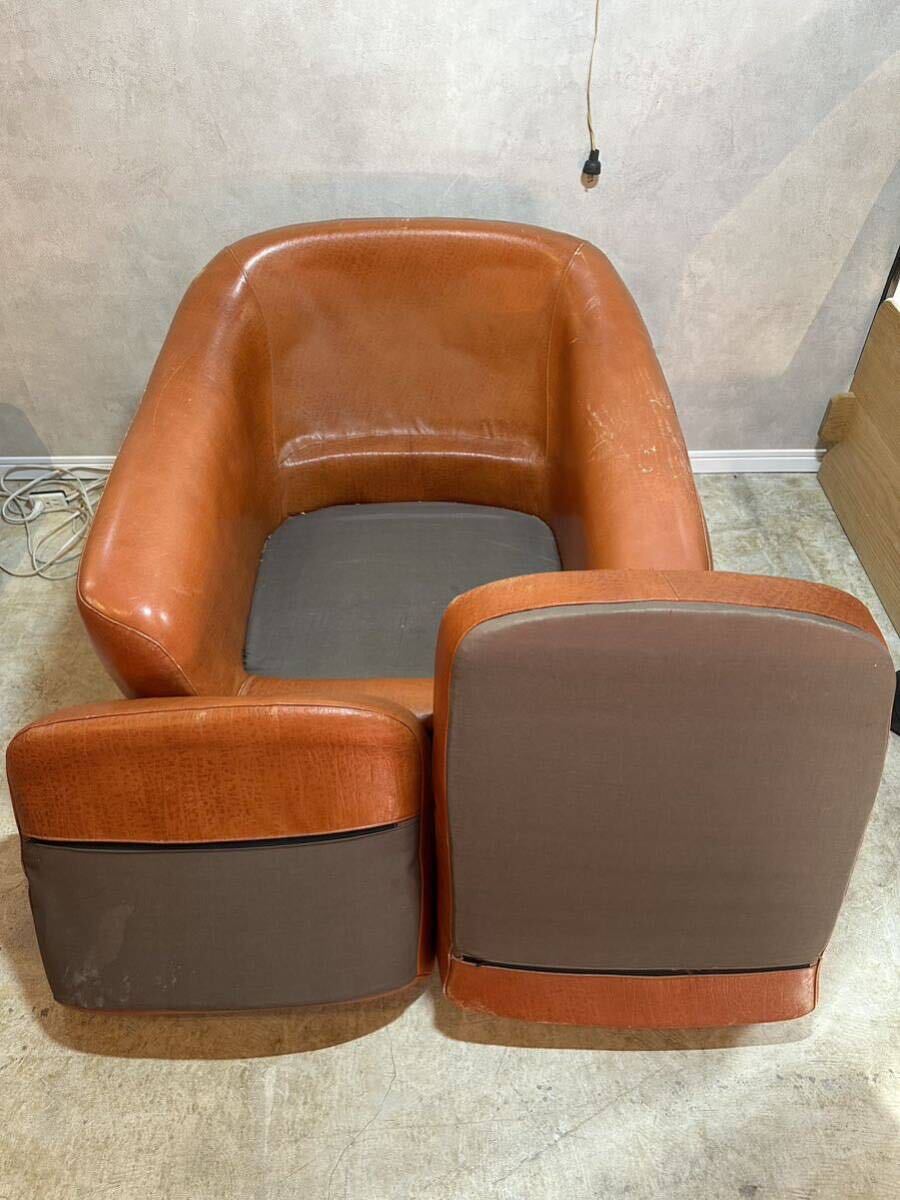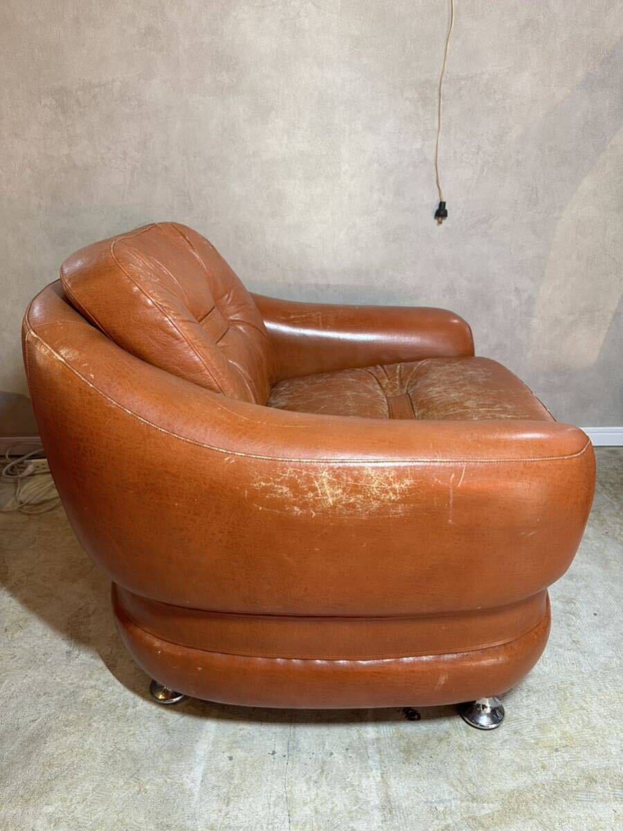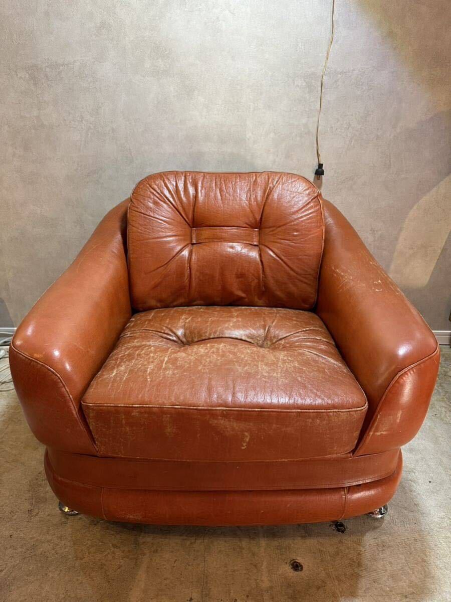 本革 ヴィンテージ 1P シングル ソファ レザー ミッドセンチュリー ビンテージ 一人掛け ラウンジチェア 引取可 ①