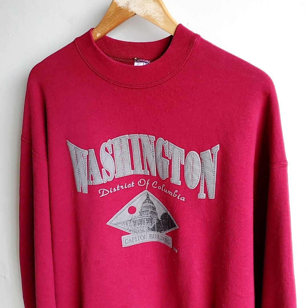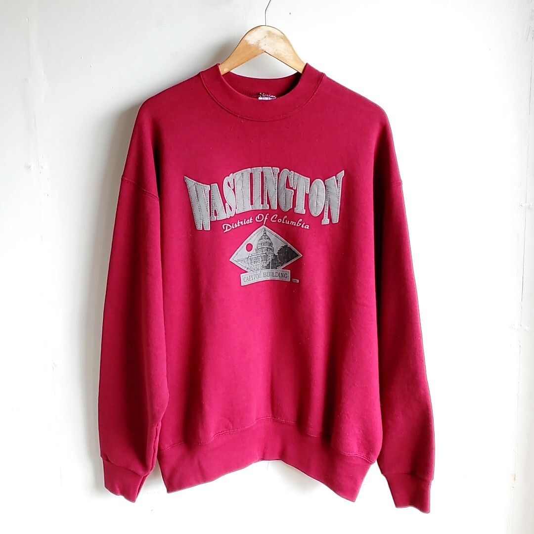 65◆FRUIT OF THE ROOM スウェット トレーナー XLサイズ 赤系 ワインレッド CAPITOL BUILDING WASHINGTON 古着 USED 中古