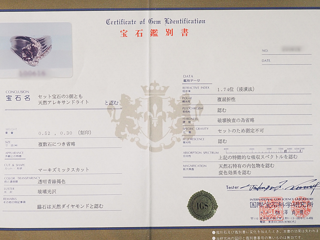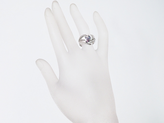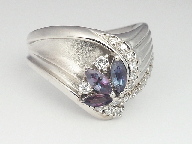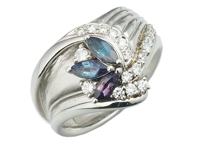 詳細:ノーブランド アレキサンドライト/0.52ct ダイヤ/0.30ct Pt900 デザイン リング 10.5号 鑑別書付き 仕上済
