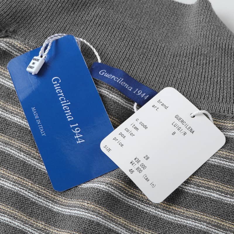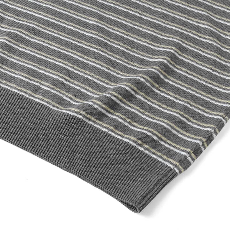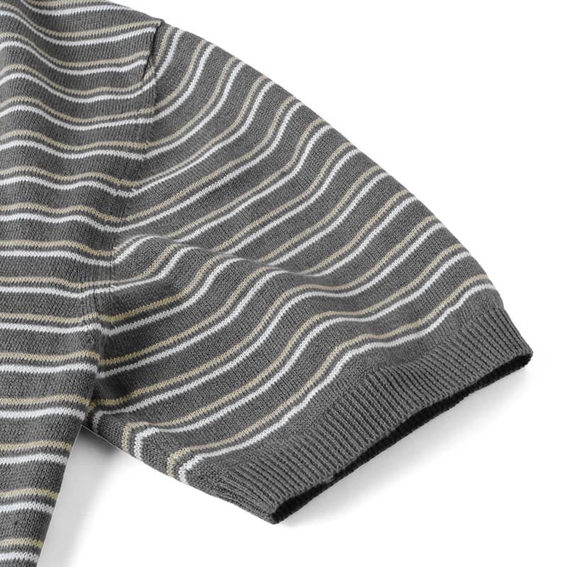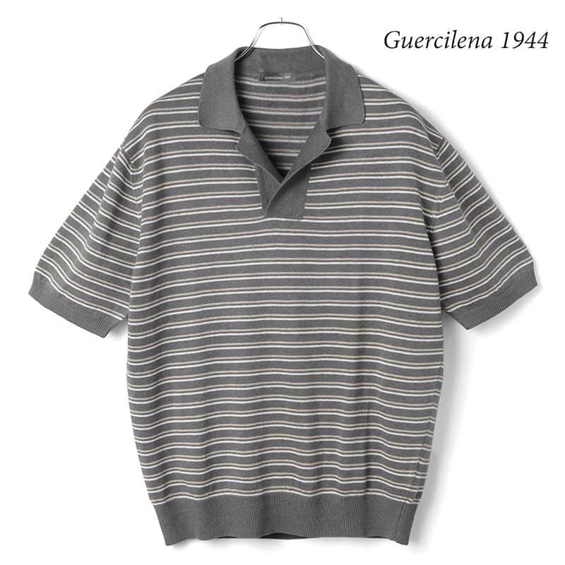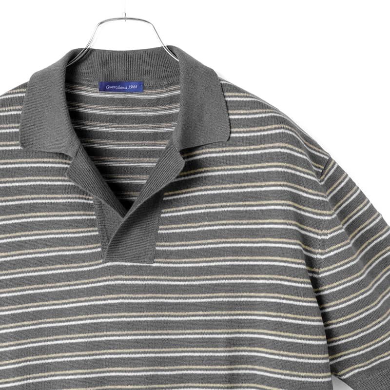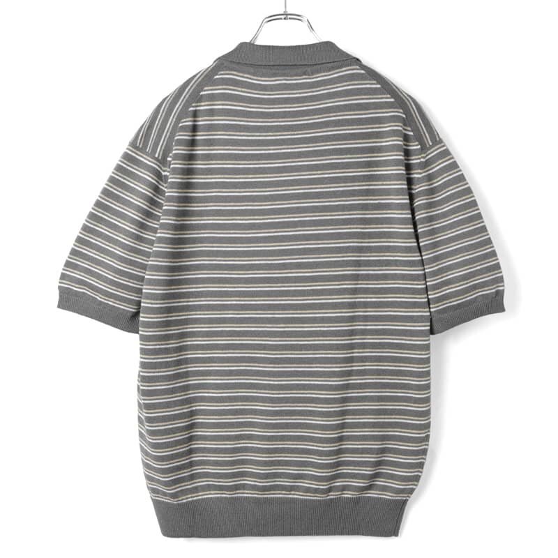 リネンコットンハイゲージボーダー柄半袖スキッパーニットポロシャツ(LUIGI/R)