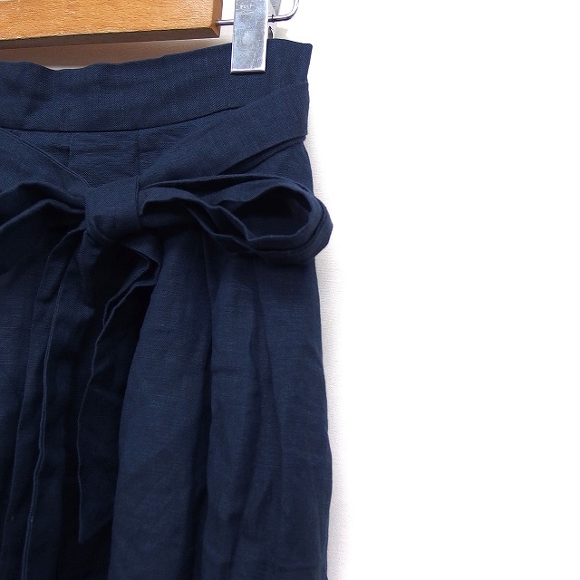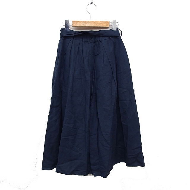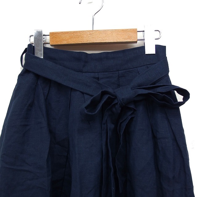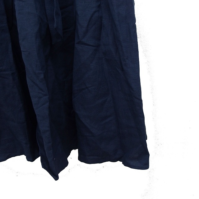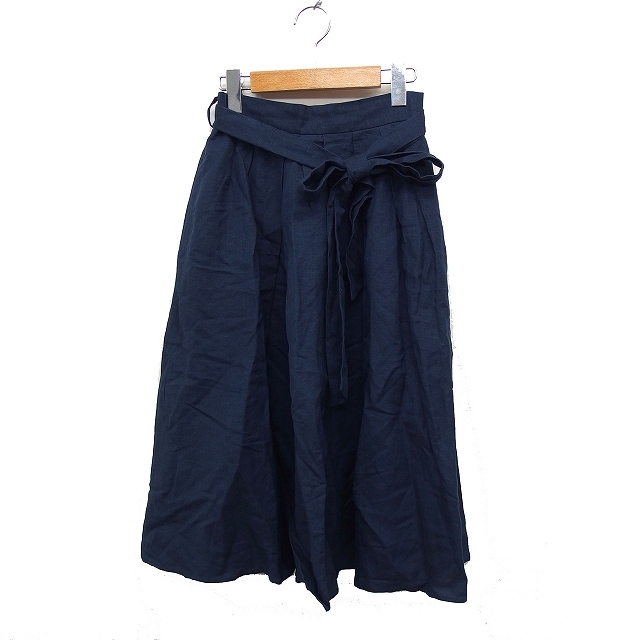 ビス ViS タック フレア スカート ロング ミモレ丈 無地 麻 リボン S ネイビー 紺 /FT6 レディース