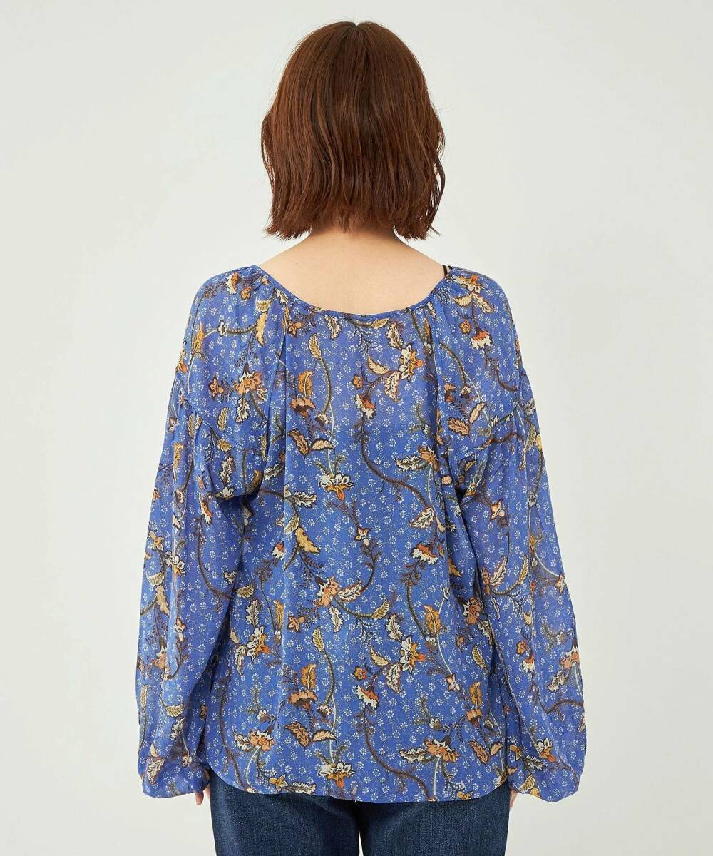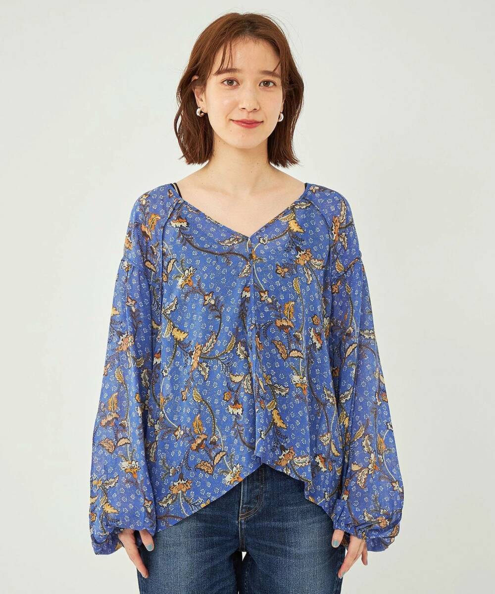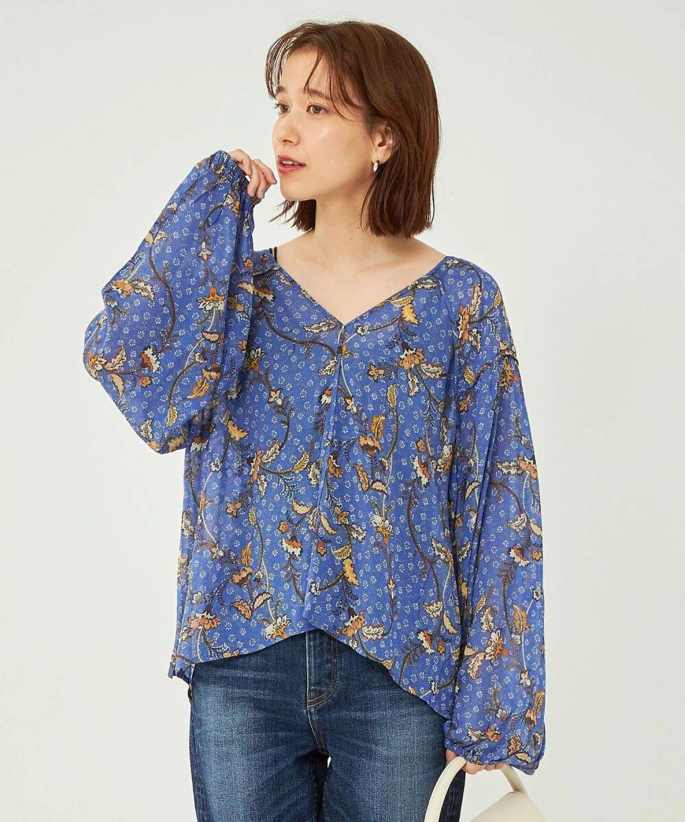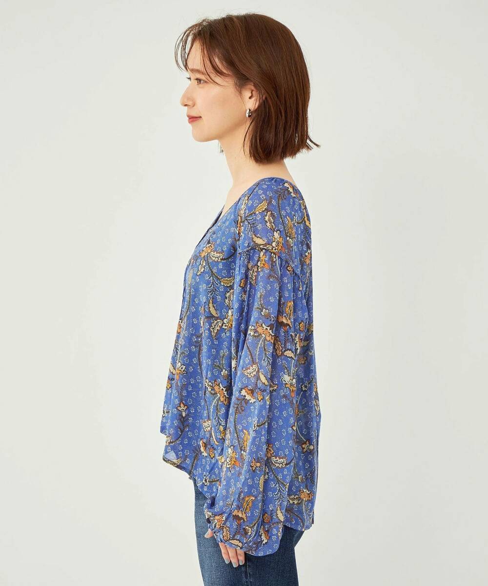 大幅値下げ!新品タグ付き ユナイテッドアローズグリーンレーベルリラクシング UNITED ARROWS green label relaxing お花柄ブラウス ブルー