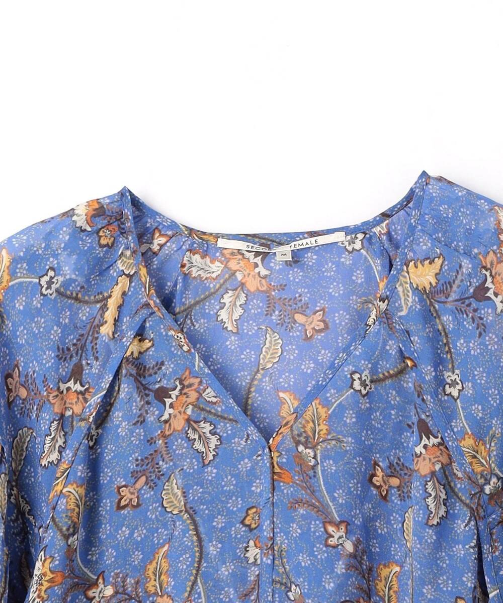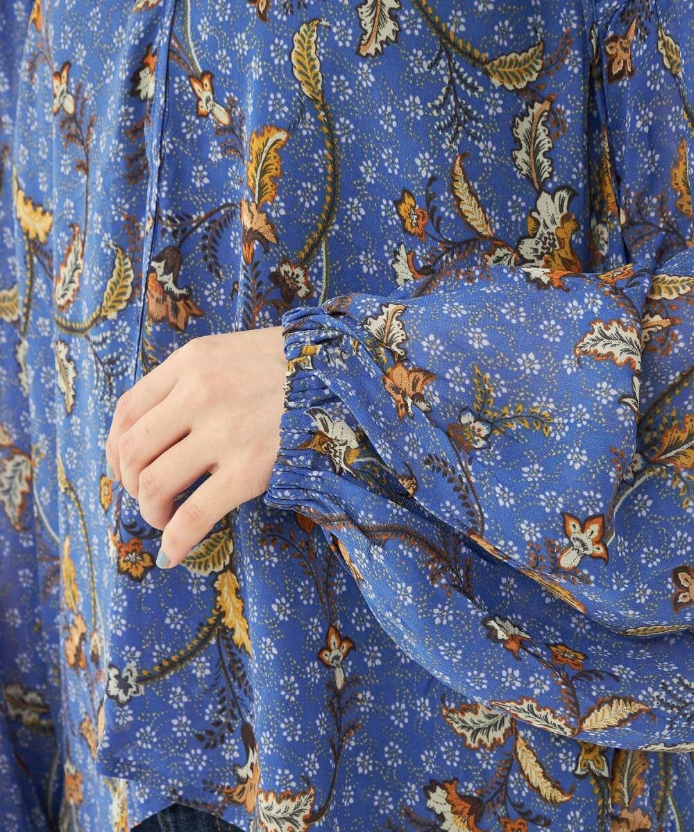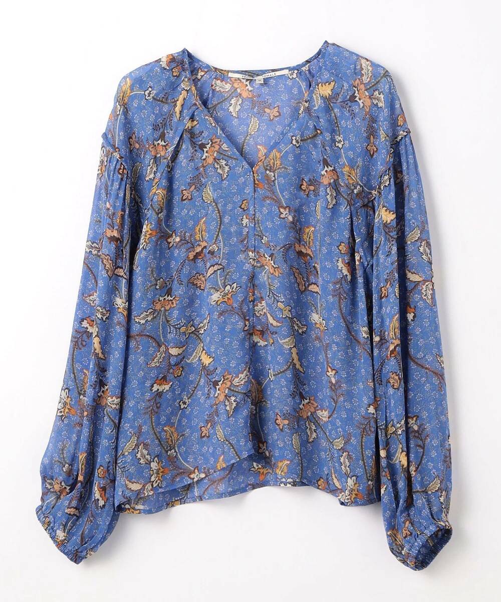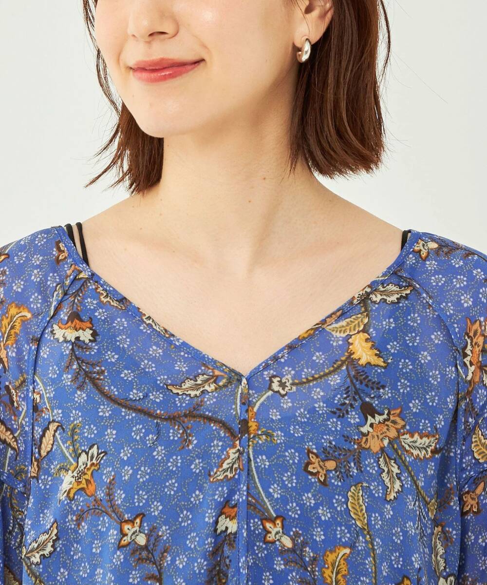 大幅値下げ!新品タグ付き ユナイテッドアローズグリーンレーベルリラクシング UNITED ARROWS green label relaxing お花柄ブラウス ブルー