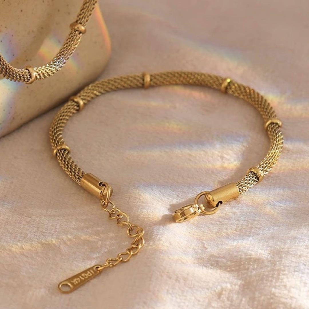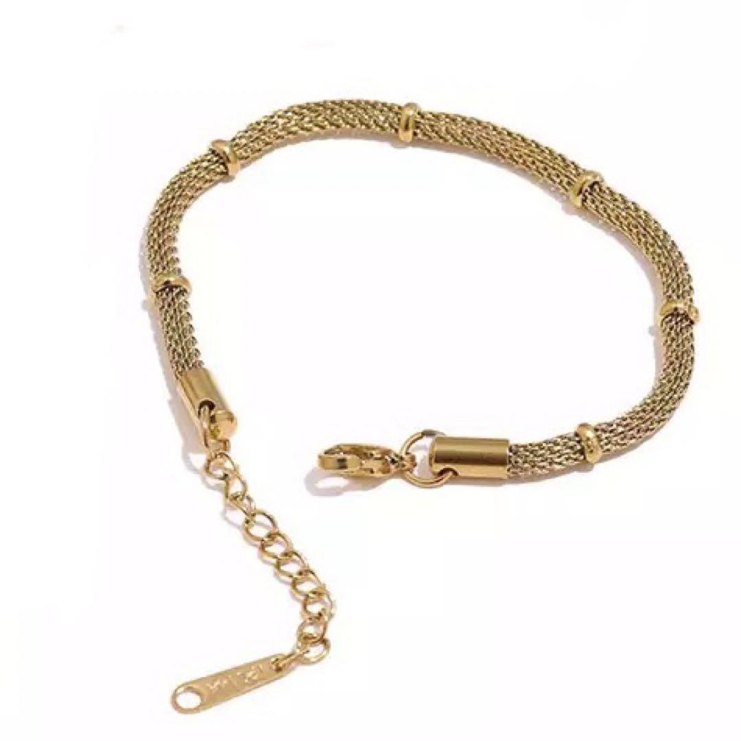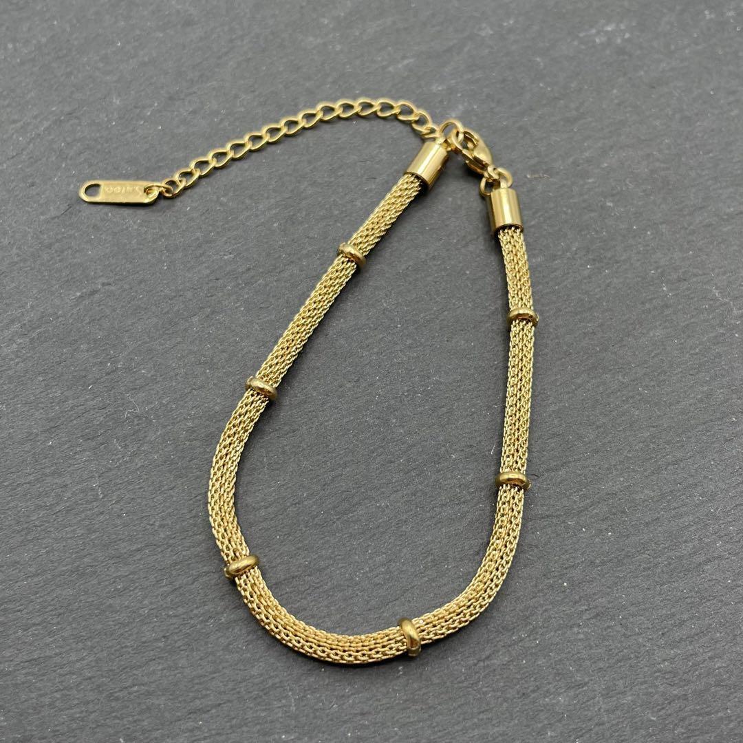 ゴールドチェーンが目を引くブレスレットです♪