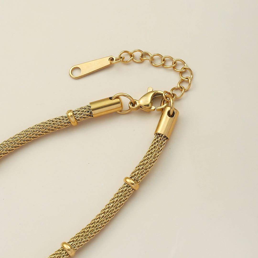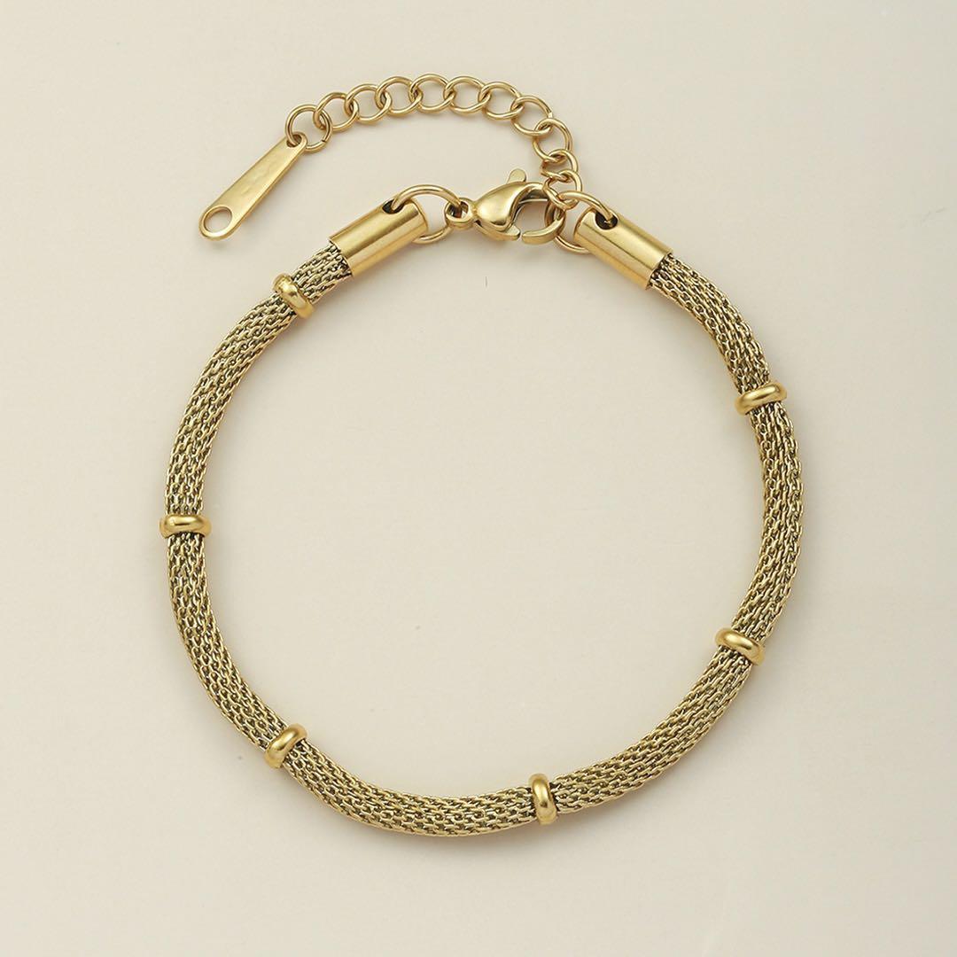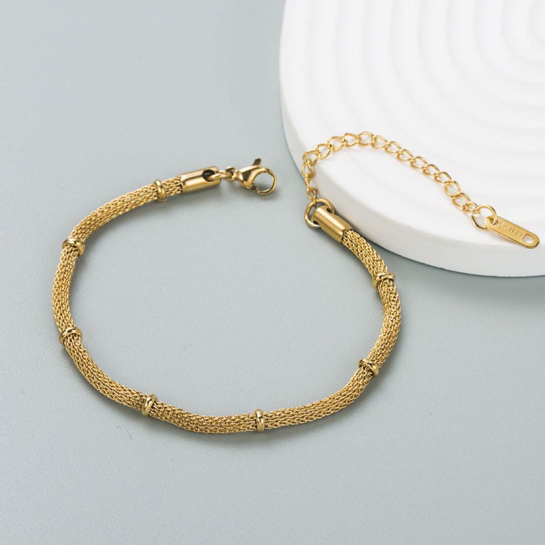 ゴールドチェーンが目を引くブレスレットです♪