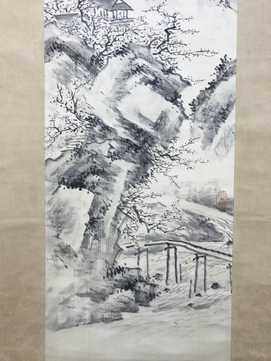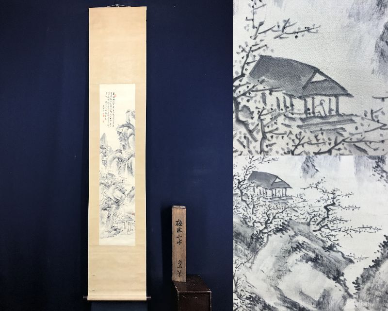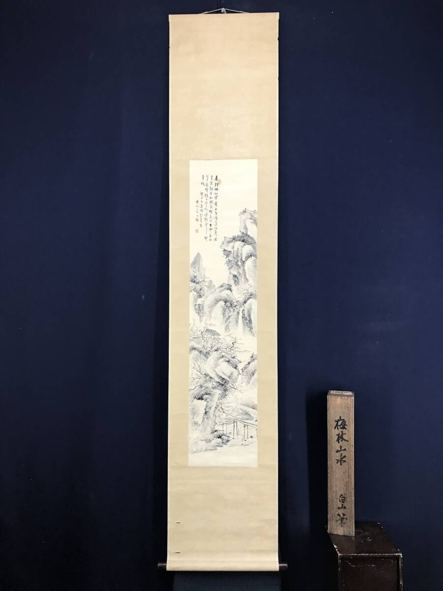 真作/浅井柳塘/梅林山水画賛/山水図/掛軸☆宝船☆AF-146