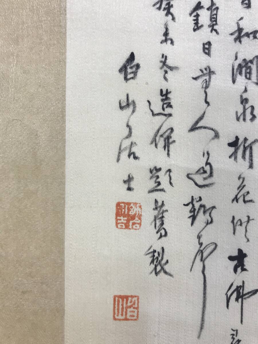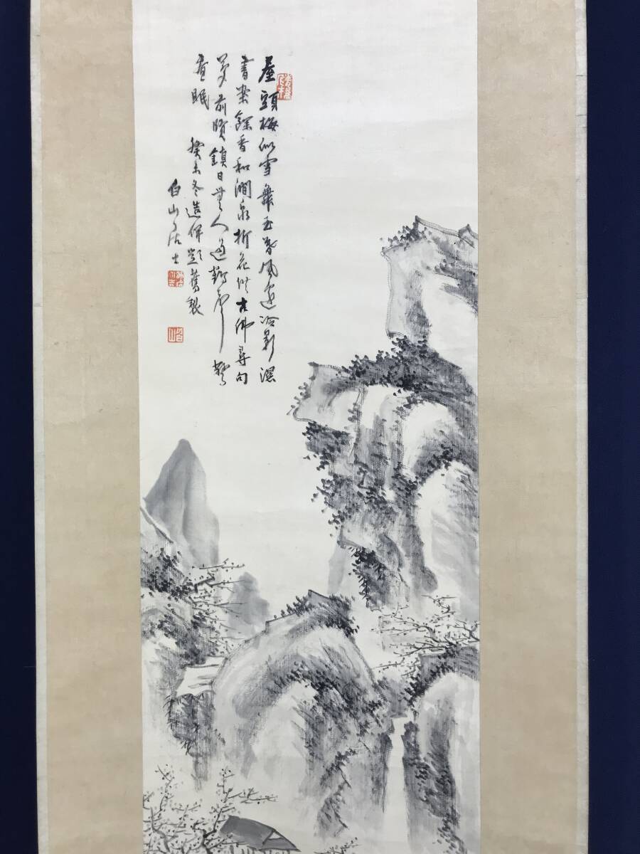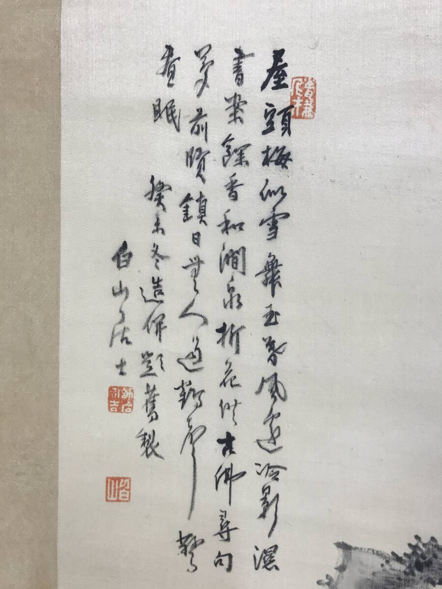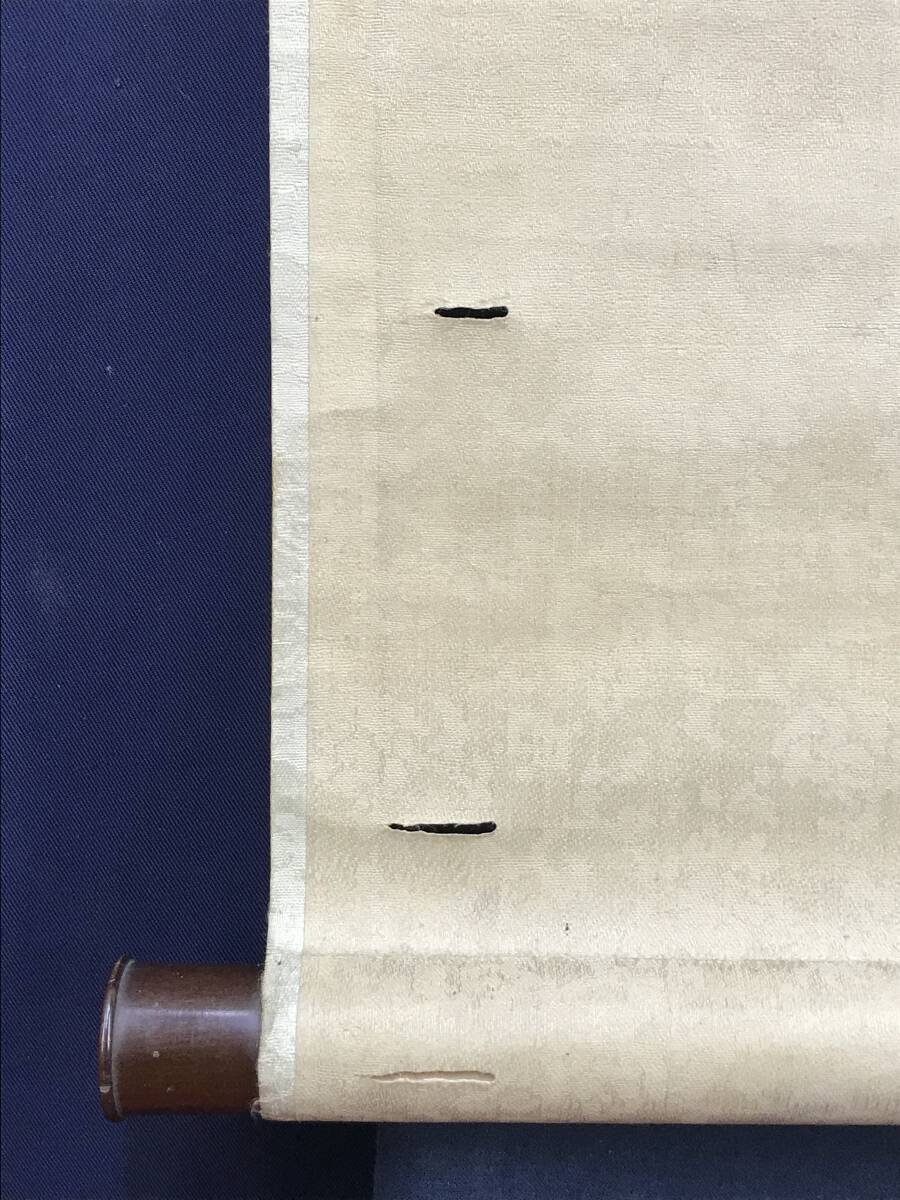 【作品状態】 本紙は絖本肉筆です。本紙は概ね良好です。表装は多少の時代感あり、地に数ヶ所の虫穴、天の両端に数ヶ所の欠損あります。
