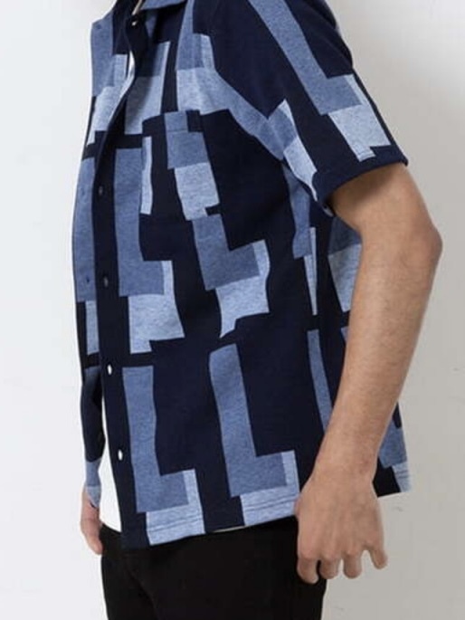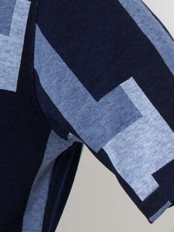 プリントのような繊細な編地で表現したハイゲージのカットジャガード素材です。 存在感あるブロック柄が目を引く1枚。 ソフトで柔らかい着心地で、ストレスなく着用出来ます。