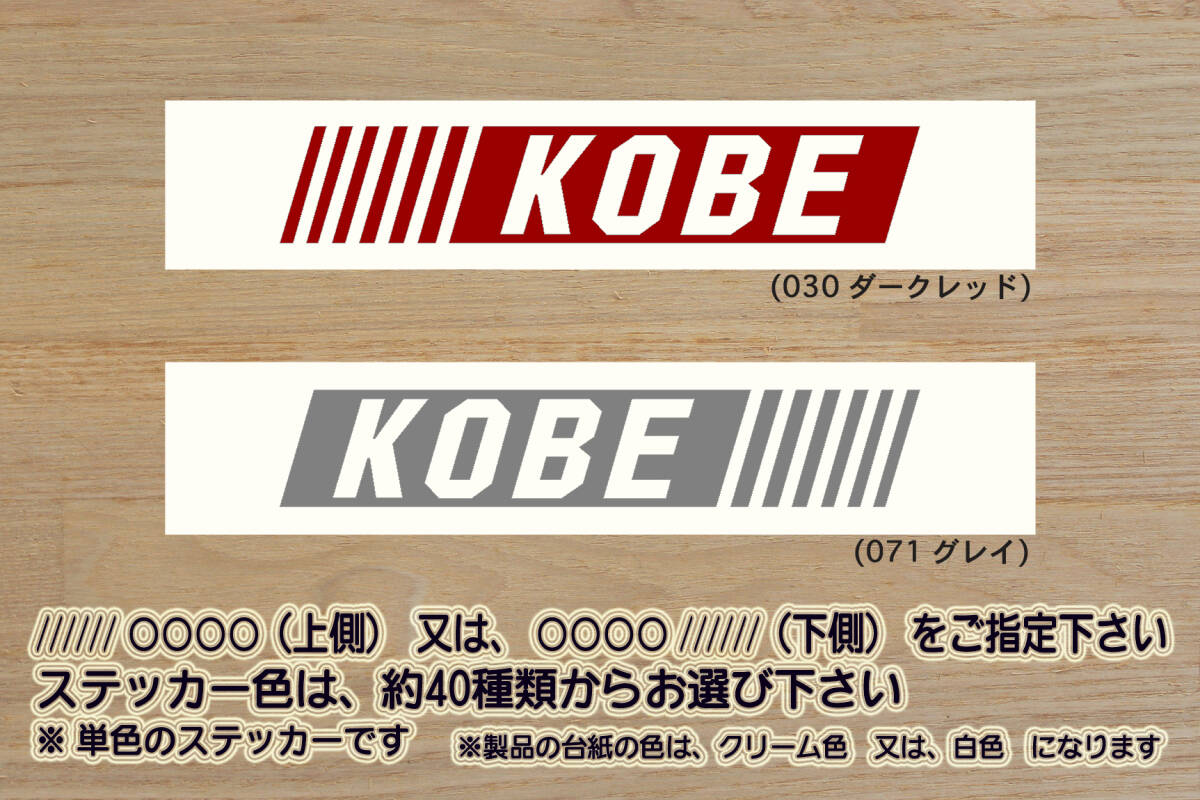 バーコード KOBE ステッカー Sサイズ 108mm×20mm 600円 です クルマ や オートバイ 以外でも、ノートパソコン や 楽器 など 身近なアイテムのドレスアップにピッタリです ◆デザイン ///// ○○○○ (画像上側) 又は、 ○○○○ ///// (画像下側) をご指定下さい ※文字部分は切り抜かれています ※○○○○は、任意の文言に変更出来る事ではありません ◆ステッカー色 約40色からお選び下さい ※単色のステッカーです ※製品の台紙の色は、クリーム色 又は、白色 になります 指定は出来ません 2枚セットではありません、Sサイズ1枚の価格です 文字の大きさや間隔など、バランスを調整してデザインしています マーキングフィルム(ステッカーシート)は ドイツORAFOL社製 ORACAL651(中期~長期 屋外耐候年数4~5年) ※1を使用しています 多少伸び縮みするのでしわになりにくく、車のボディーなど緩やかな曲面への施行も可能です また、施工しやすいようにステッカーの上から転写透明フィルムを貼って仕上げています ステッカーを転写透明フィルムごと貼付け 転写透明フィルムのみ剥がすと パーツがばらばらにならずに施工出来ます | |||||||||||||||||||||