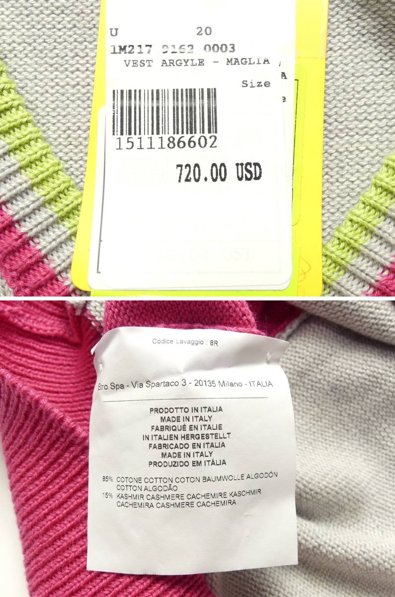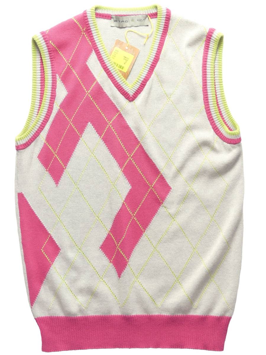 通年物106,000円新品ETROエトロ★洒落かわいいペールトーンのコットンカシミアニットベスト【ピンクL=日本L】