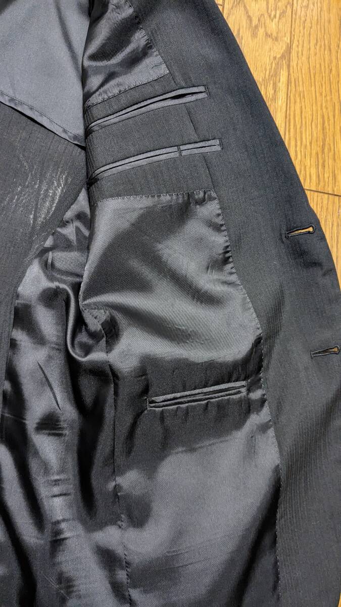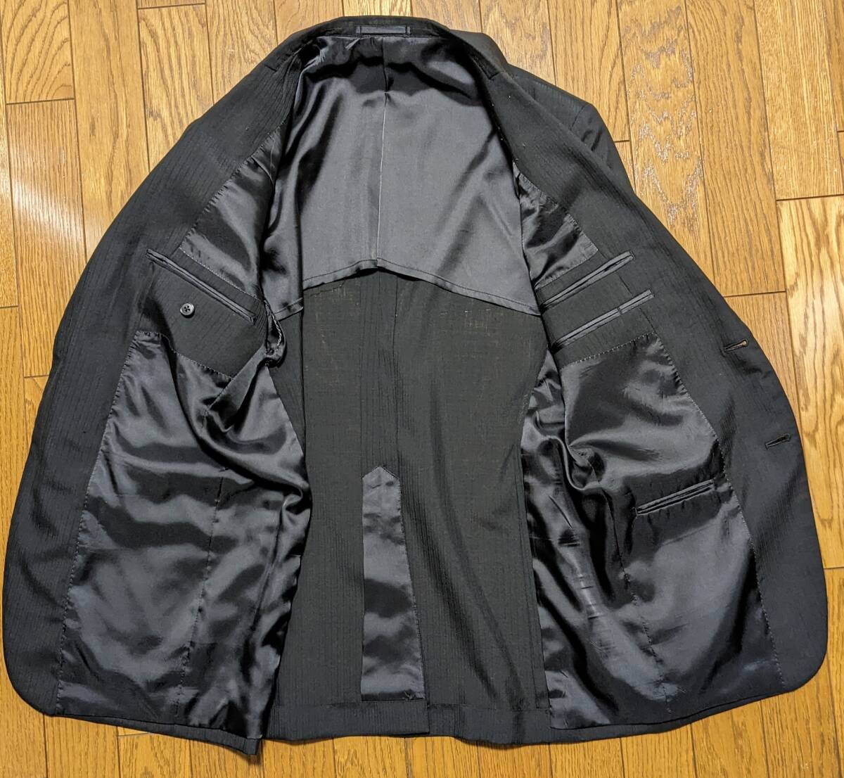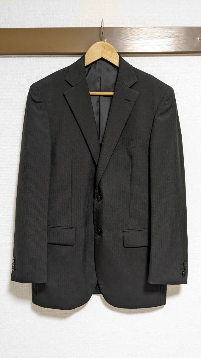 イオン 夏スーツ 黒 ストライプ A6 身長175 胴囲82 胸囲94