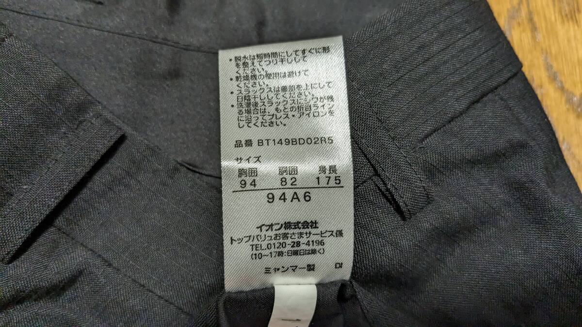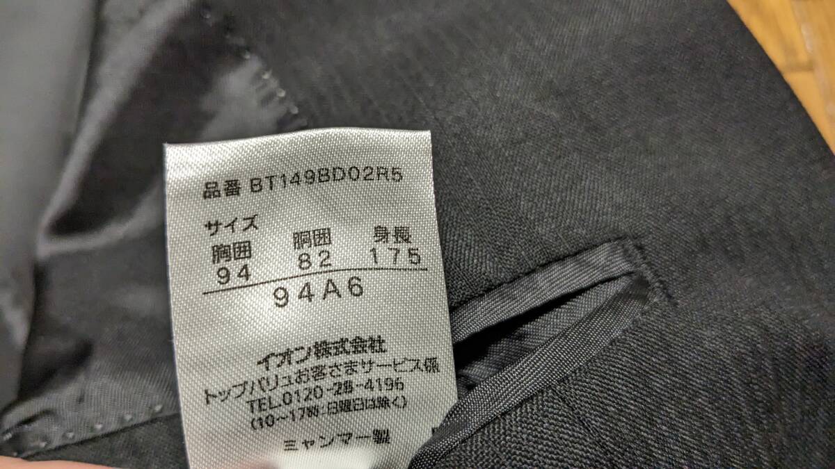 イオン 夏スーツ A6 身長175 胴囲82 胸囲94