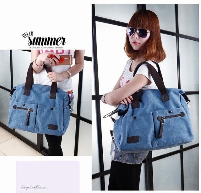 ショルダーバッグ キャンバス地 レディース 大容量 ショルダーバッグ 2way 肩掛け 鞄 カバン 通学 通勤 プレゼント ブルー MAY752