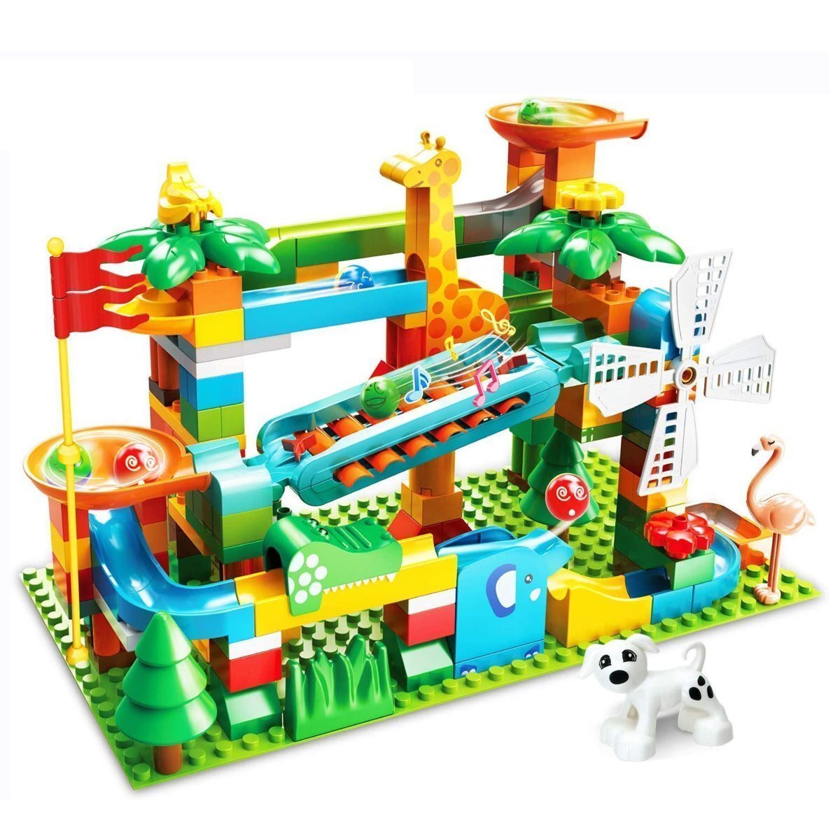 CJM429★レゴ兼用 デュプロ交換 スロープトイ ジャングル大冒険 コースター ルーピング立体パズル 171ピース 基礎板付き