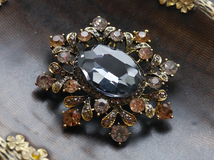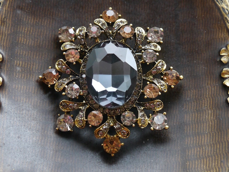 新品アンティーク調キラキラ黒系ストーンゴシックブローチ クラシック ヴィンテージ風 ヴィクトリアン