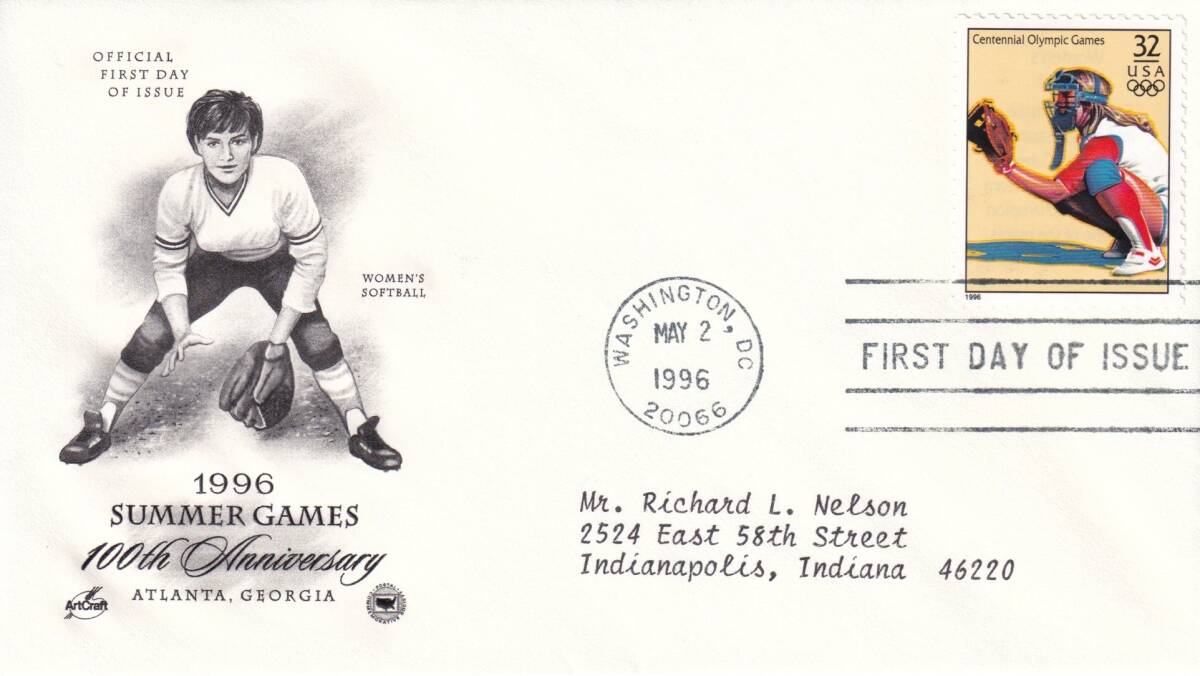 【FDC】夏のオリンピック100年:女子ソフトボール(5)(1996年)(アメリカ)実逓 t4250