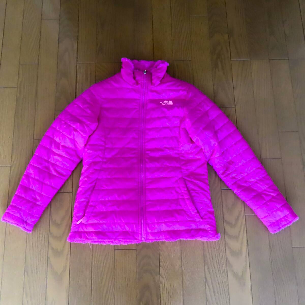 美品 THE NORTH FACE ノースフェイス ナイロン 裏ボア ジャケット girl's filles XL 18 ピンク系